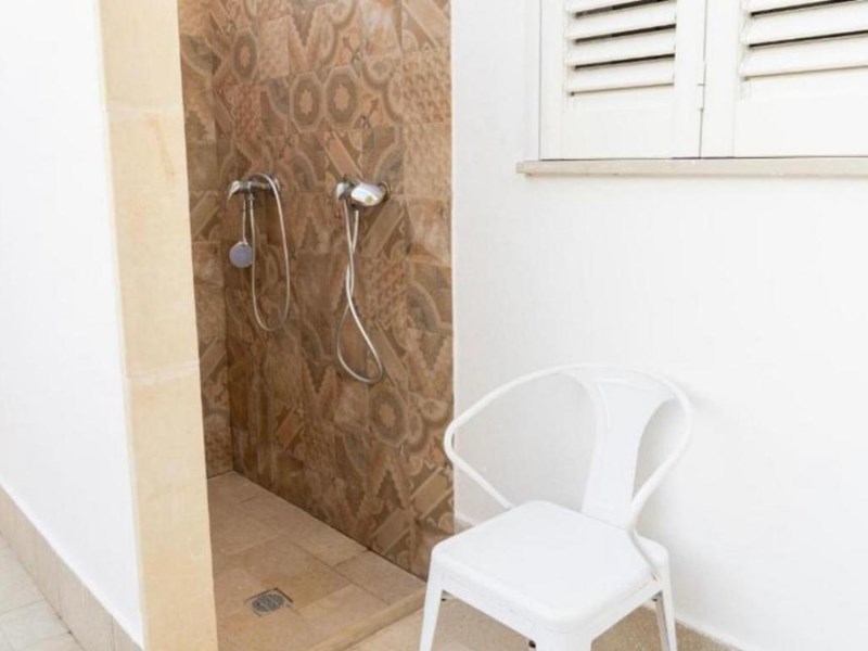 Da una scala esterna, si può accedere al terrazzo con vista mare. La piscina, situata nella parte retrostante dell’immobile, è ampia e comoda ed è dotata di doppia doccia esterna.