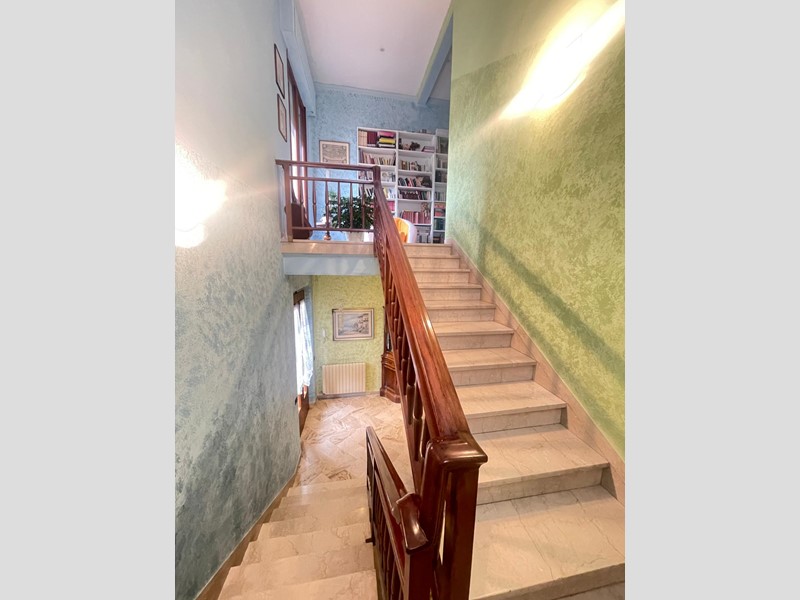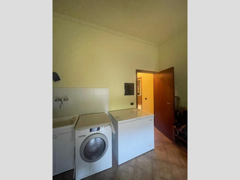 Piano terra: ampio ingresso, elegante sala da pranzo con camino, spaziosissimo salotto anch’esso dotato di un suggestivo camino, una camera attualmente utilizzata come lavanderia e un comodo bagno di servizio.