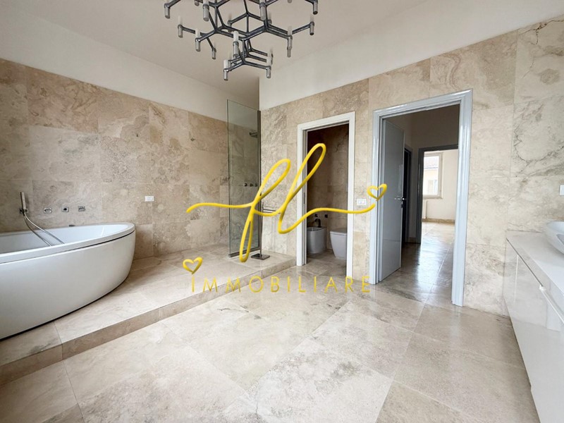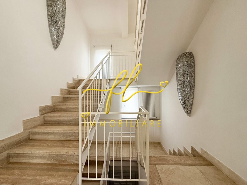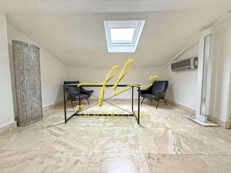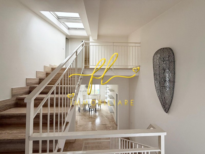 La maestosa scala ci conduce al piano primo dove si apre una luminosa e grandissima zona living, composta da cucina abitabile con penisola e spazio dedicato alla tavola, salone e due terrazzi. Nella zona notte la camera da bagno, la lavanderia, la camera matrimoniale. La scala prosegue nel piano superiore dove altri due vani sono stati dedicati alle camere e al secondo bagno. Al piano terra troviamo un altro vano abitazione di circa 30 mq oltre al garage di altri 20 mq.