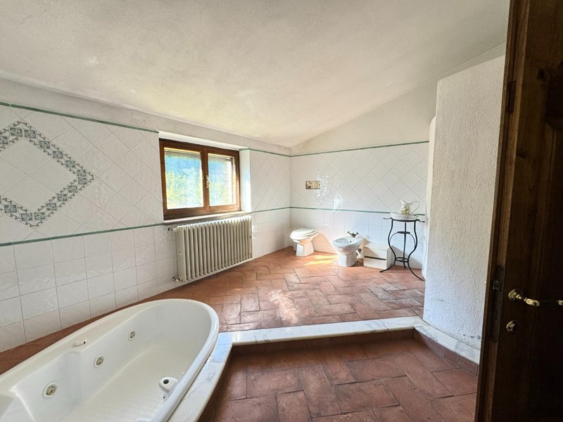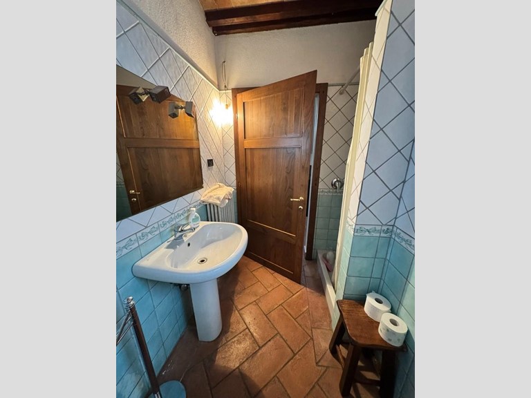 Tramite una scala interna (di pietra serena) arriviamo al piano primo dove troviamo tre camere e un grande bagno con idromassaggio.