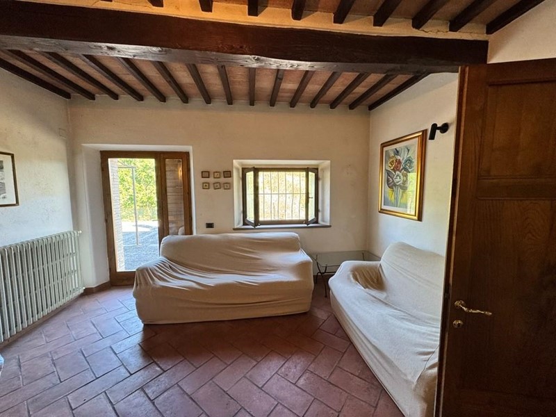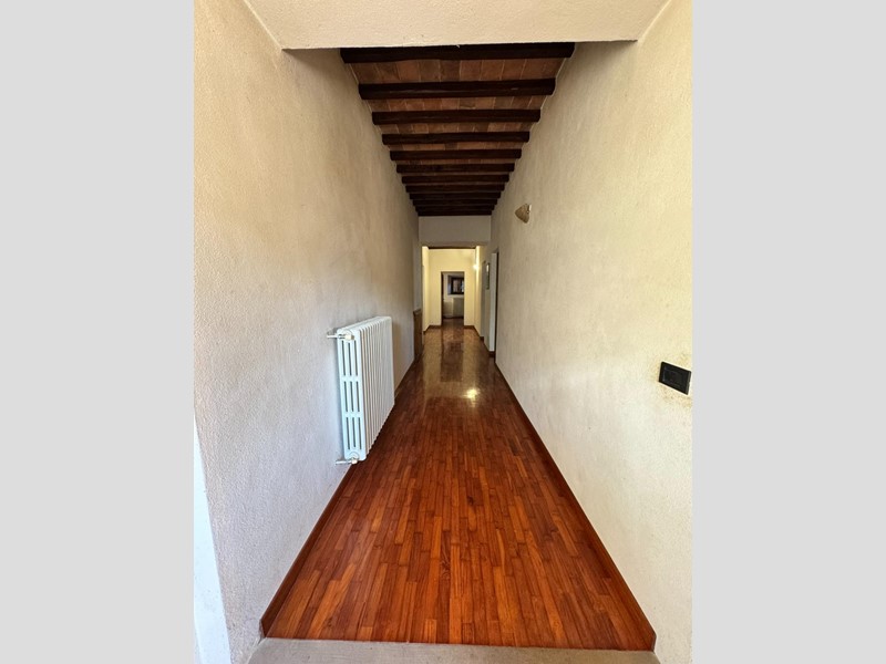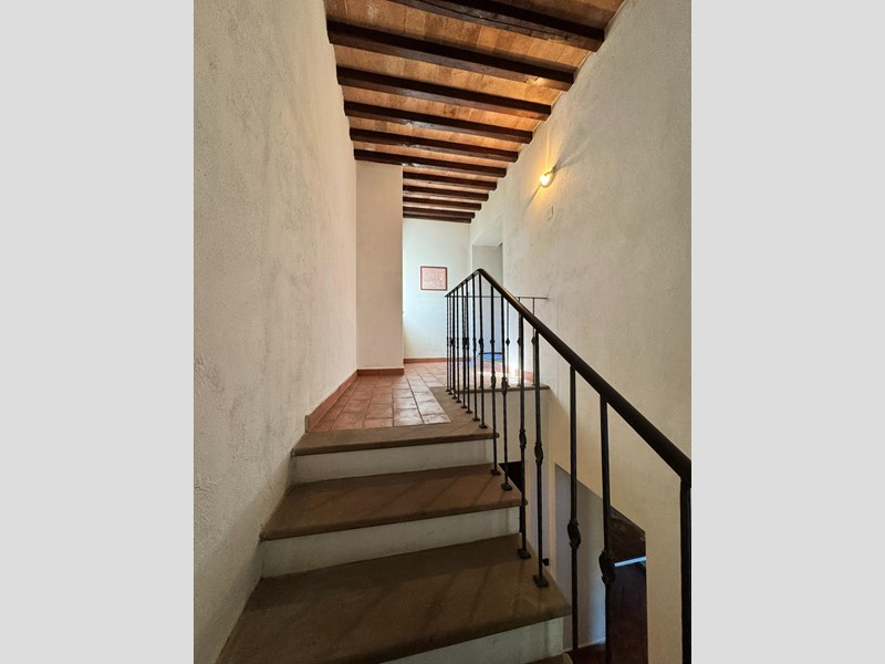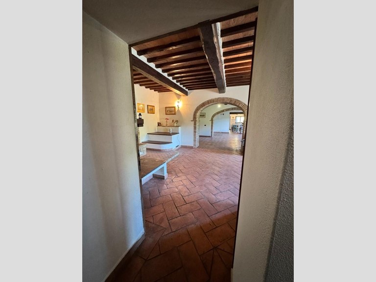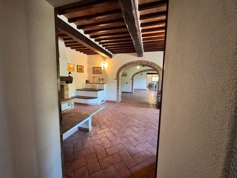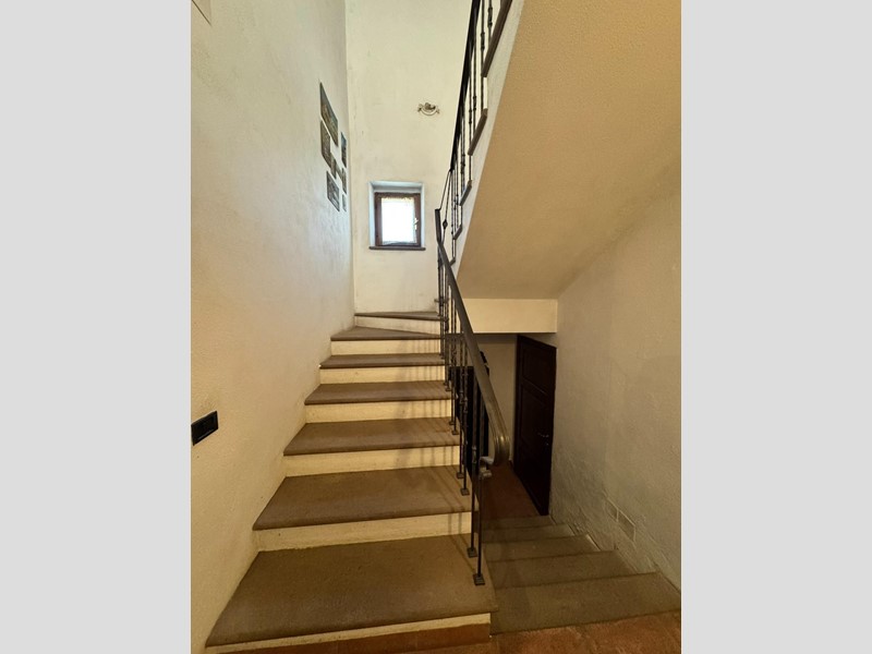 Suddivisa su più livelli, cosi composto: al piano terra un ampio ingresso, cucina abitabile, doppio soggiorno diviso da un bellissimo arco a mattoni impreziosito da un imponente camino in pietra, bagno, lavanderia e ripostiglio (rifiniture con pavimento pavimento in cotto dell’impruneta)
