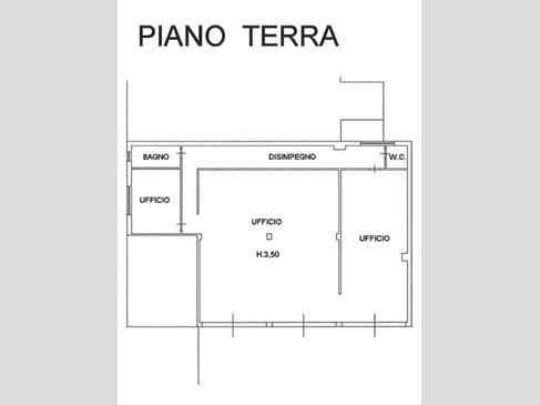 Composto da: ampio ufficio diviso da parete divisoria, piccolo ufficio chiuso, bagno, disimpegno e wc.