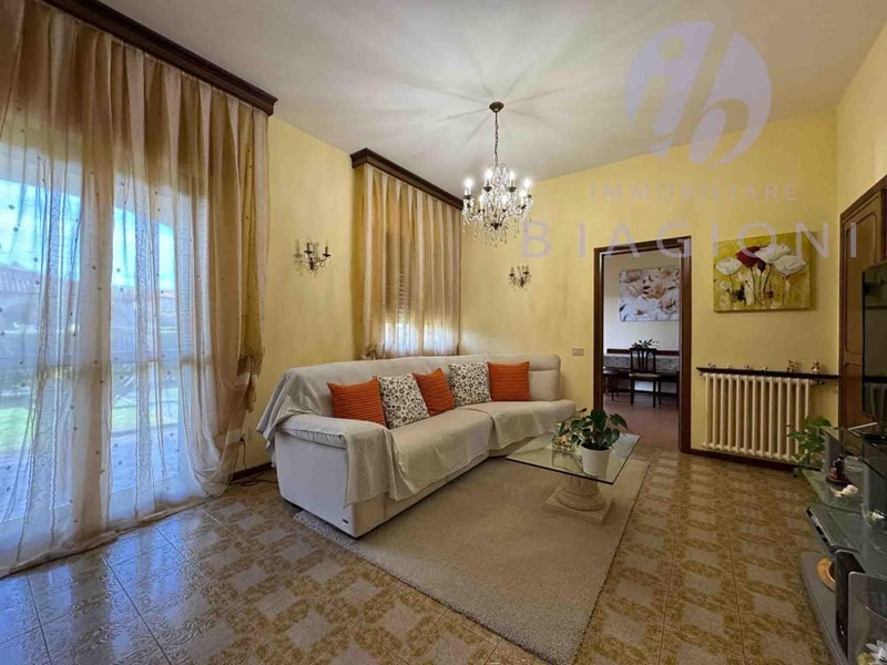 L'appartamento al piano terra è composto da una spaziosa veranda abitabile, ampio e luminoso soggiorno, cucina, sala pranzo, tre camere matrimoniali, una cameretta e due bagni.