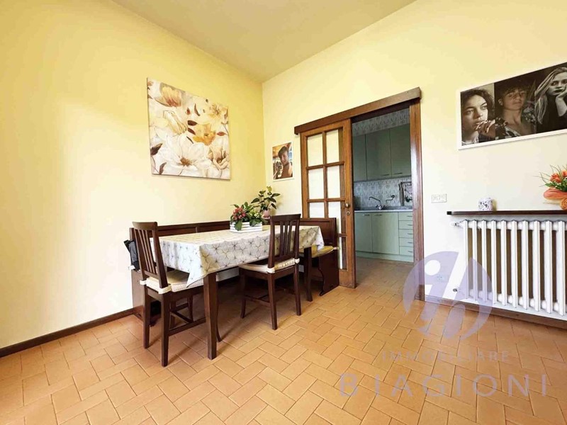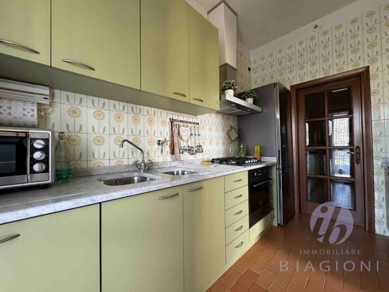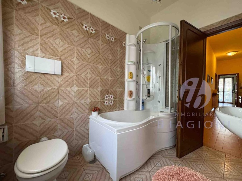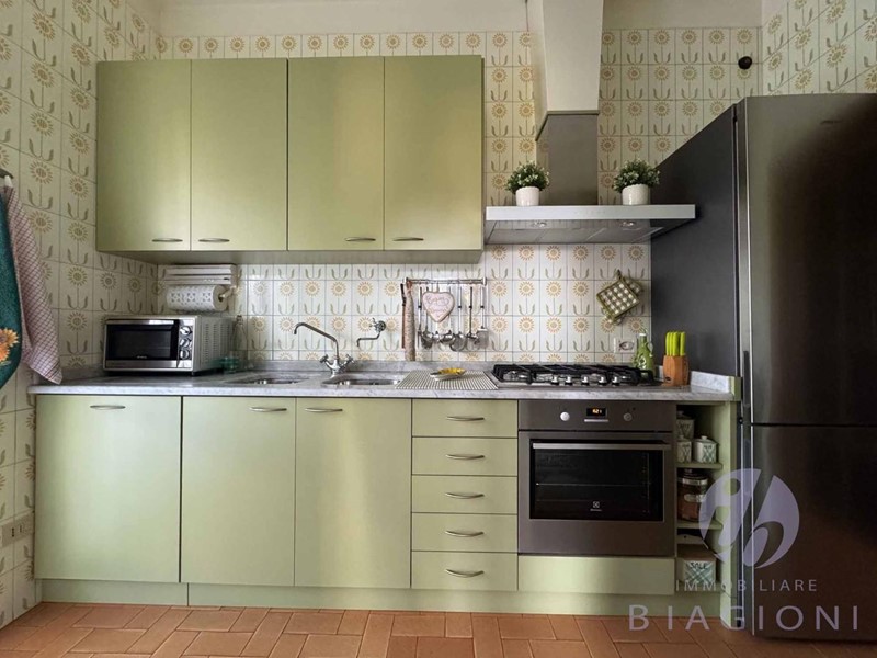 L'appartamento al piano primo è composto da ingresso indipendente, ampio soggiorno con balcone, cucina abitabile, due camere matrimoniali di cui una con bagno privato, camera singola, altro bagno con doccia, balcone.