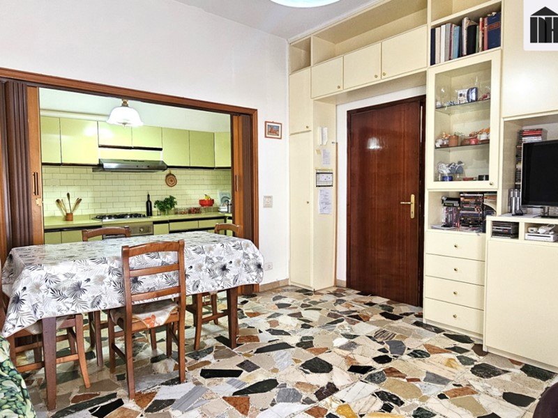 La zona giorno è composta da un ampio soggiorno / sala da pranzo con cucinotto da cui si accede, tramite porta-finestra, al balcone di pertinenza.