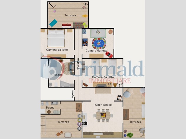 Ma ora è il momento di presentare gli interni, configurati su una vasta superficie di ben 150 mq, una libertà assoluta di cui beneficiare. L'ingresso ti accoglie in una zona giorno ampissima, inondata di luce naturale. Una cucina da sogno può prendere forma qui, spaziosa, funzionale e pronta ad accogliere ogni tua idea di comfort. La zona giorno, attualmente presenta un accesso ad una sala relax, ma facilmente unificabile che può diventare parte integrante dell'ambiente living per chi ama vivere in open space.  La luce e l'aria non mancano, poiché la soluzione è dotata di un'area esterna di circa 120 mq, suddivisi in 3 terrazzi, di cui due affacciano su entrambi i lati dell'area giorno. Qui potrai goderti colazioni all'aria aperta, pranzi in compagnia, momenti di lettura o serate con gli amici. E se ami arredare gli esterni, questi terrazzi sono il tuo spazio per creare un'oasi privata.