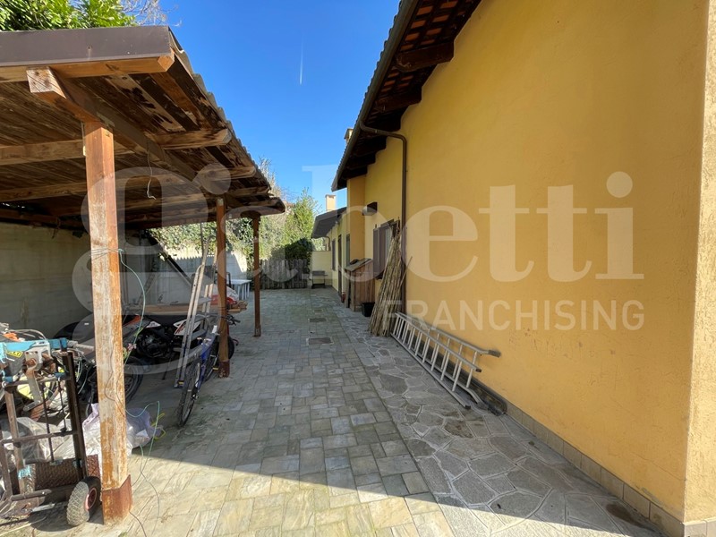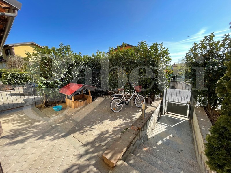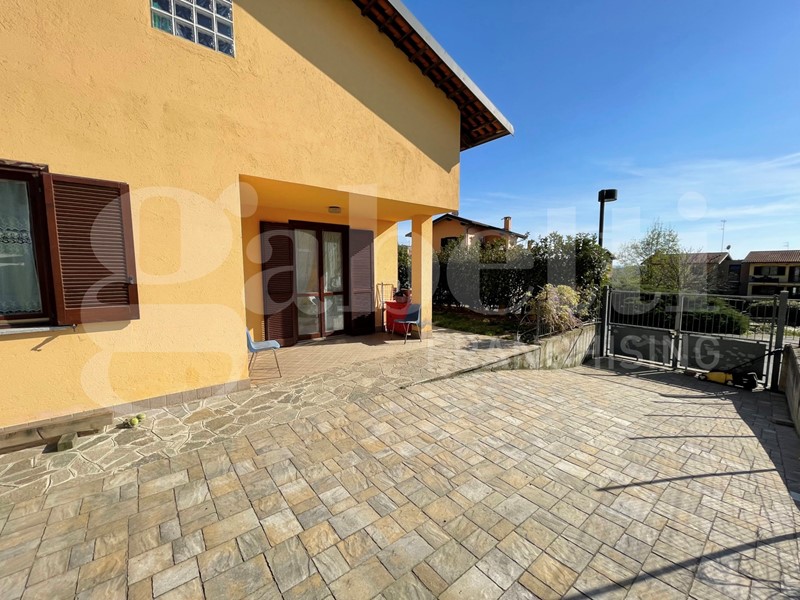 In posizione tranquilla e soleggiata, all'interno di un contesto residenziale, proponiamo villa libera sui tre lati di ampia metratura. L'immobile oltre ad essere di recente costruzione è provvisto di un termocamino ventilato, addolcitore dell'acqua a sale, ventilazione meccanica nelle due cucine e nei bagni, riscaldamento bi-zona, oltre alla predisposizione per l'antifurto, il cancello automatico e l'illuminazione a pavimento esterna. Gli spazi al suo interno sono così disposti: al piano terreno tramite portoncino blindato, troviamo un bilocale composto da ingresso su soggiorno con angolo cottura, disimpegno, bagno e camera da letto. Eventualmente può essere ricollegato alla restante parte di abitazione mediante piccole opere murarie. Tramite il medesimo ingresso, sempre al piano terra, si sviluppano: cucina abitabile, disimpegno, ripostiglio, soggiorno e scala di collegamento che permette l'accesso al piano superiore, il quale ospita un disimpegno, tre camere da letto, ed il bagno. Completano la proprietà il cortile rifatto due anni fa, il giardino ed il box auto. CE D - IPE 99,52 ? 250.000 Rif. 25017