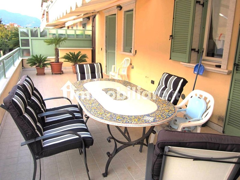 Marina Di Massa Centralissimo a soli 200mt dalla spiaggia, bellissimo appartamento di rappresentanza in pieno centro ma su via laterale al passeggio con grandi terrazze pranzabili/solarium (1 da 40mq ed 1 da 20mq) con barbeque in fabbricato signorile con finiture in marmo di recente costruzione; si compone di ingresso, ampio soggiorno-pranzo con cucina in nicchia con top e tavolo a penisola in splendido granito nero, disimpegno attrezzato con importanti armadiature su misura, due bagni di cui uno con box doccia idromassaggio teuco, due camere da letto con sei posti letto, ampia cantina e garage da un'auto e mezza. termosingolo caldaia Immergas, condizionatore Daikin con pompe di calore con tre splitter arredato minuziosamente.