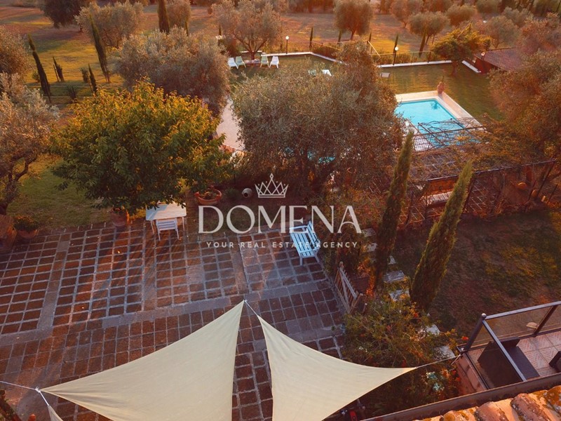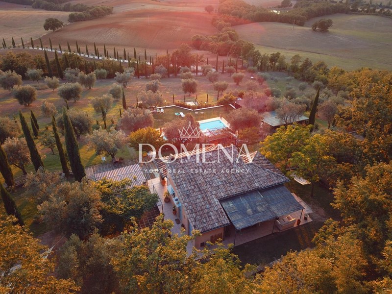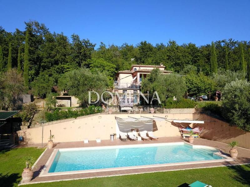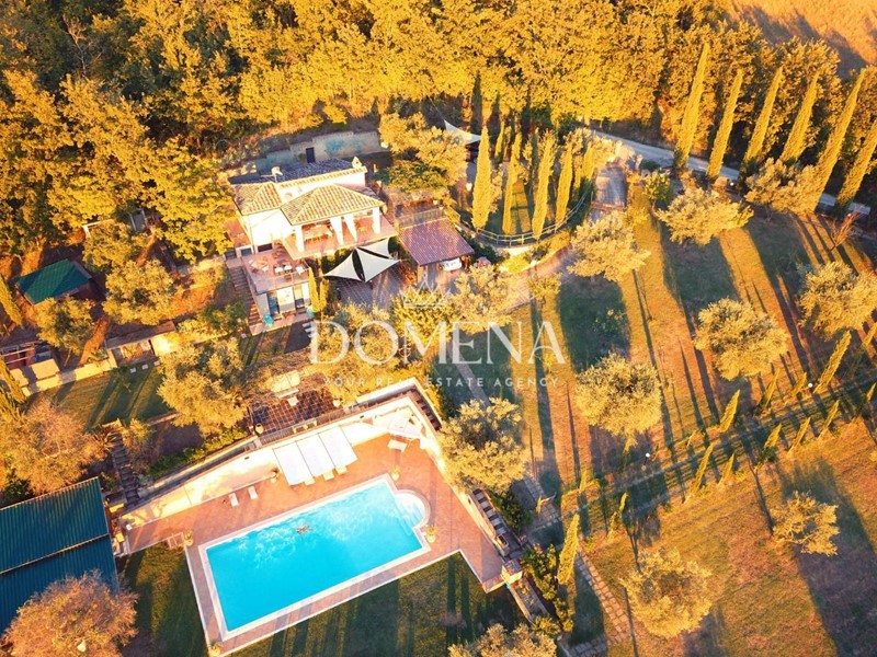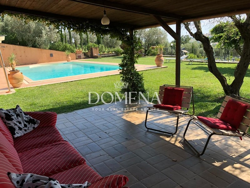 Nei pressi delle Terme di Saturnia, comune di Manciano in Toscana, a circa quattro chilometri di distanza dal centro storico, dieci chilometri dalle terme, circa trenta minuti di distanza dalle bellissime località balneari dell'Argentario, proponiamo una prestigiosa proprietà costituita da una villa unifamiliare posta alla sommità di una collina panoramica con completa esposizione a sud-ovest che offre suggestivi tramonti. La villa è disposta su due piani, si accede all'ingresso principale da un resede attrezzato che porta direttamente alla parte interna con zona cucina-pranzo e bellissimo living vetrato con un meraviglioso affaccio panoramico sulla vallata. Sullo stesso piano troviamo una camera da letto ed un bagno finestrato, oltre ad un vano tecnico-ripostiglio. Proseguendo attraverso una scala di collegamento arriviamo ad altra zona soggiorno con porte vetrate che consentono di accedere al secondo livello del giardino con affaccio che crea collegamento tra lo spazio interno e quello esterno. Sullo stesso piano troviamo due camere da letto, ripostiglio/guardaroba, stanza pluriuso-studio e due bagni. Completa la proprietà un garage con annessi vari ripostigli-cantina. Lo stato manutentivo della villa e del giardino circostante di circa 1 ettaro è ottimo, non sono necessarie opere di ristrutturazione. La piscina 6x12 è situata in altro livello del giardino e gode di una bellissima vista aperta e con ottima esposizione soleggiata . A completamento della proprietà abbiamo altro terreno circostante che si estende per circa 2 ettari, con circa 100 piante di ulivo di cui alcune secolari, frutteto, tartufaia e bosco. L'Immobile è dotato di impianto di allarme, pozzo e la proprietà è completamente recintata.