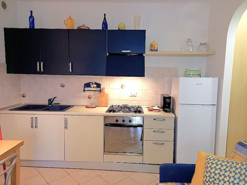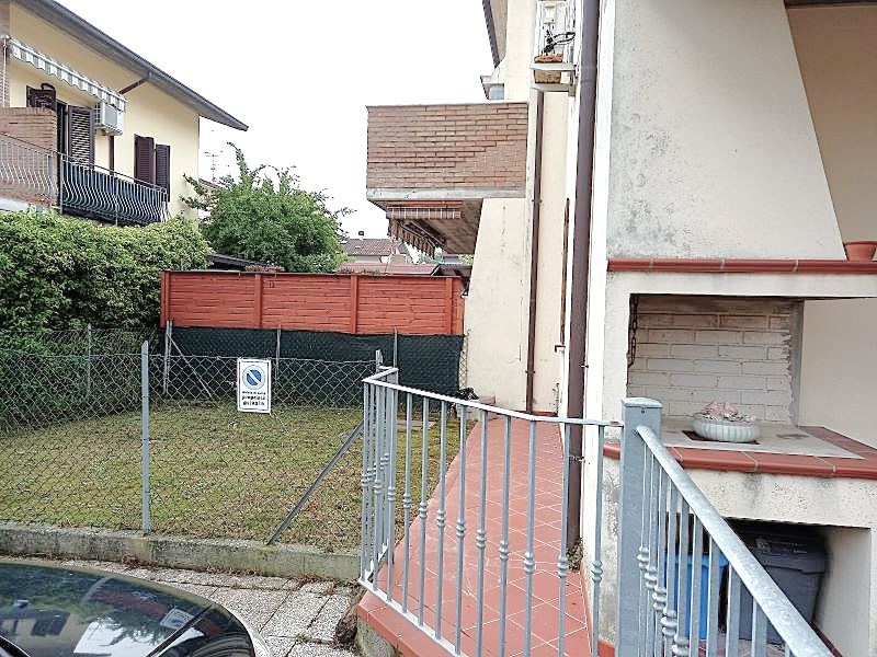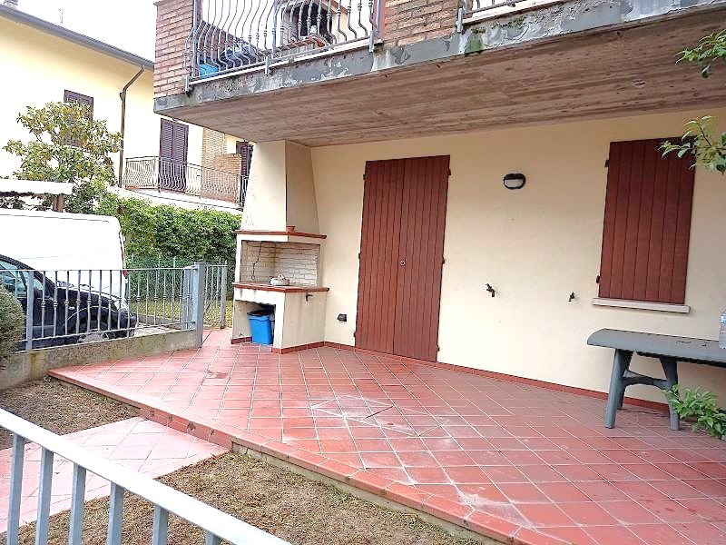 È dotata di lavatrice, televisione, forno, inferriate, di un posto auto e giardino privato con caminetto e mobili da esterno.