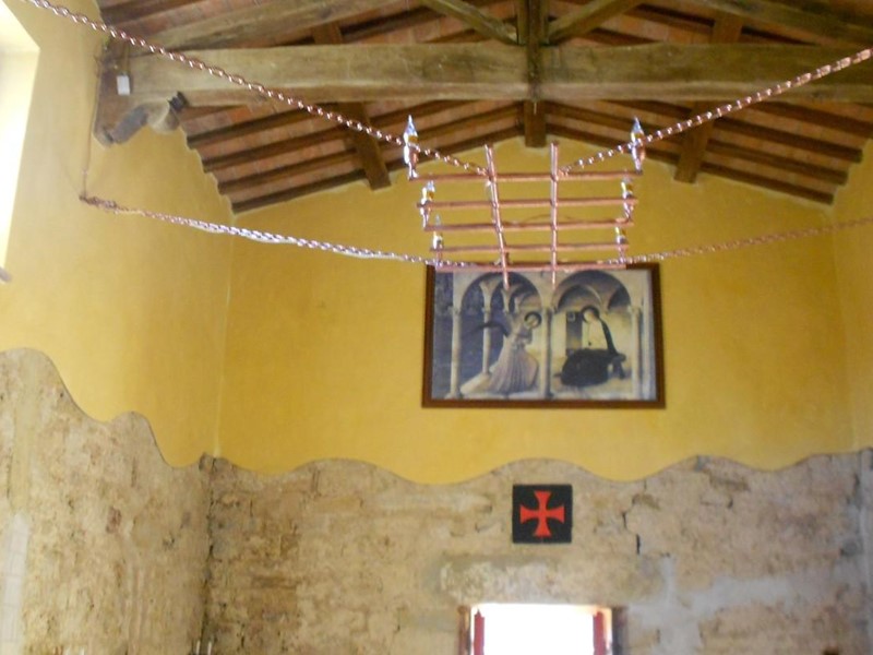 Realizzata con il tipico travertino di Casciana dalle sfumature dorate, la cappella racchiude in sé particolari originali quali l’abside semicircolare uniti a recenti interventi di restauro che hanno inglobato ulteriori elementi come il campanile a vela che si eleva sopra la facciata a capanna. A partire dall’abside e per più di due terzi della lunghezza totale l’edificio è sorretto da una tradizionale muratura a conci che si alterna a mattoncini e piccole bozze cementate da letti di malta.