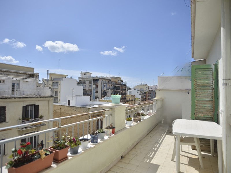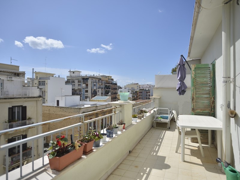 L'attico è comodo, di mq. 100 ca., ha una pianta regolare ed un bel terrazzo di mq. 20 ca., affacciato su Via Putignani. Ha un'intensa luminosità, grazie ai tanti affacci posti sia Via Putignani, che all'interno dello stabile, e nel cavedio del palazzo. Lo spazioso ingresso funge da disimpegno per tutta la casa. Due camere si affacciano sul terrazzo prospiciente Via Putignani; la terza camera si affaccia all'interno, mentre la quarta, più piccola, prende luce ed aria dall'ampio cavedio; il soggiorno ed il cucinotto si affacciano sul balcone interno. Il bagno ed un ripostiglio completano le comodità dell'immobile. L'appartamento ha le rifiniture dell'epoca e i pavimenti sono piacevoli cementine.