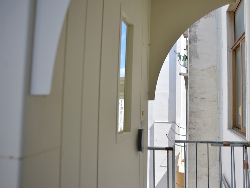 L'ascensore, appena installato, ha l'ingresso nell'androne del portone, privo di barriere architettoniche, e sbarca sul balcone interno dell'appartamento
