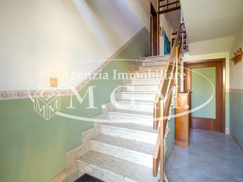 Dal giardino, una scala interna privata conduce all’abitazione principale, posta al primo piano, che si sviluppa su un unico livello e si compone di: