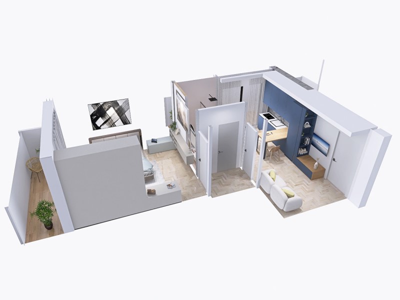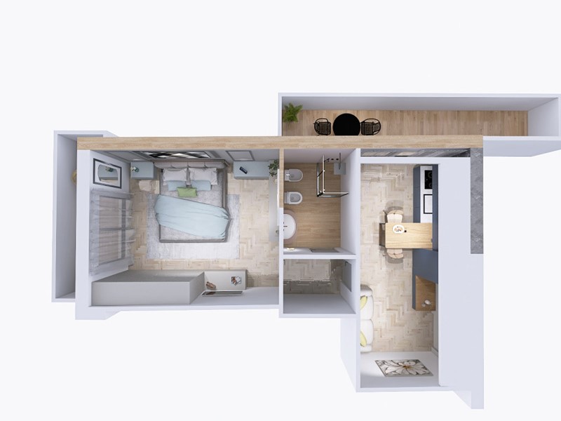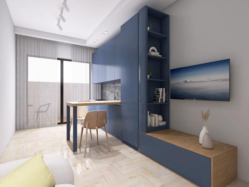 L'immobile è composto da luminoso soggiorno con angolo cottura, disimpegno, bagno finestrato, comoda camera matrimoniale, due balconi ideali per momenti di relax all'aperto.