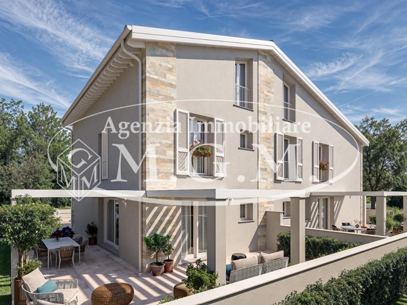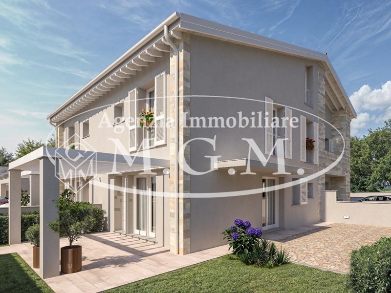 Proponiamo in vendita una VILLETTA ANGOLARE in TRIFAMILIARE dallo stile contemporaneo ed esclusiva di nuova costruzione, disposta su due livelli oltre mansarda per una superficie complessiva di 151 mq, oltre pergolati esterni e giardino privato, ben vivibile con posti auto interni.