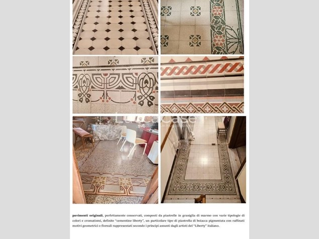 Essi come per l’esterno presentano dettagli originali quali gli infissi in legno, le porte del periodo, gli affreschi in alcune stanze, i pavimenti del Tessieri e la graniglia sono il mix perfetto per chi cerca un'atmosfera di prestigio e tranquillità, il tutto come meglio rappresentato delle planimetrie che alleghiamo per vostra consultazione.