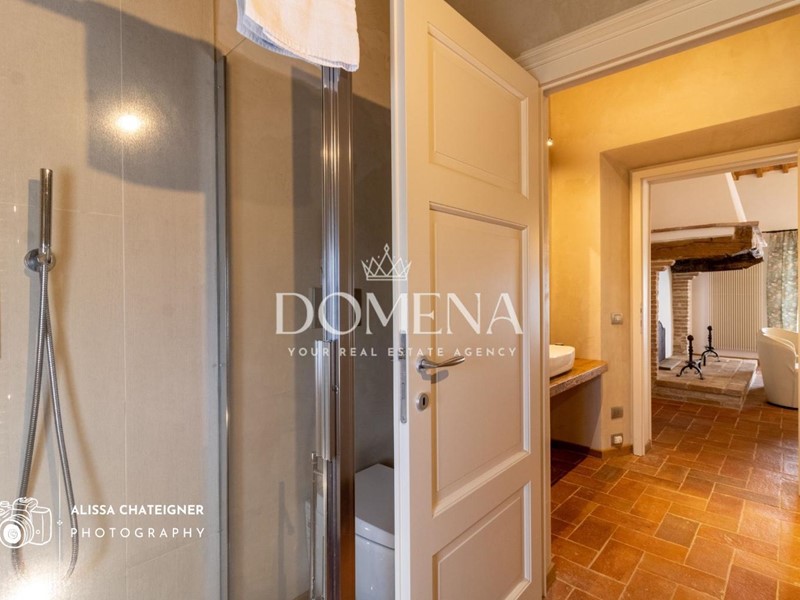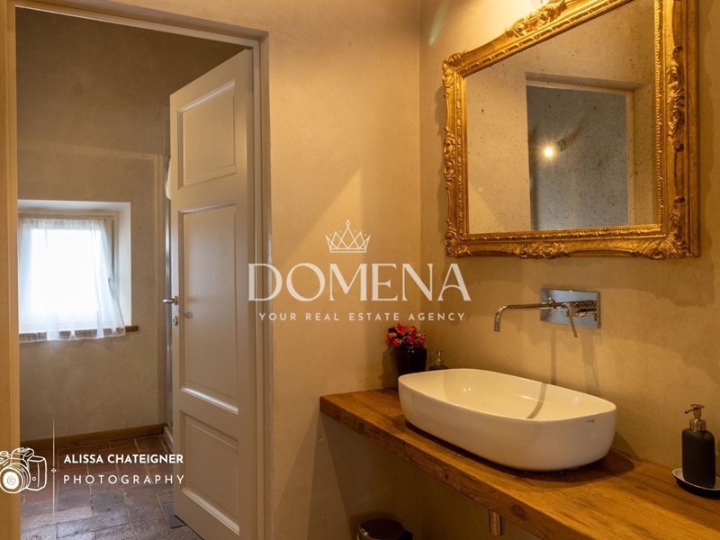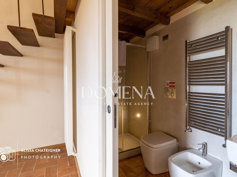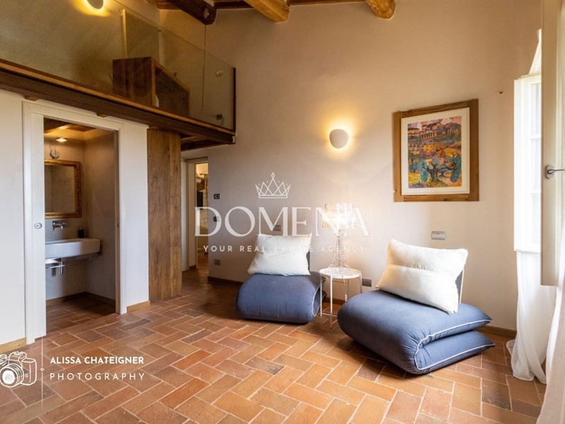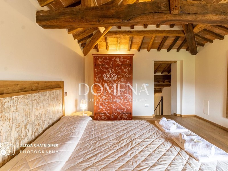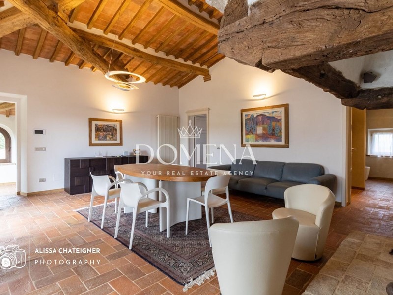 Il restauro integrale ha saputo coniugare raffinatezza contemporanea e autenticità toscana: sono stati scelti materiali di pregio, finiture eleganti e soluzioni pensate per garantire comfort e bellezza duraturi. Soffitti alti con travi a vista regalano respiro agli ambienti, impreziosendo di calore e carattere.