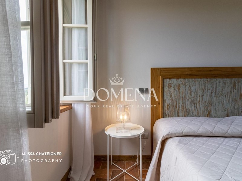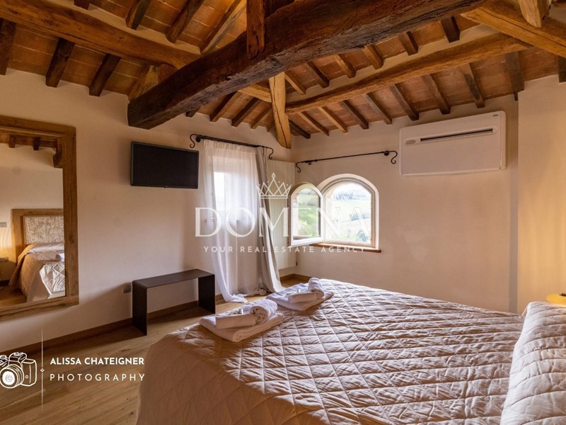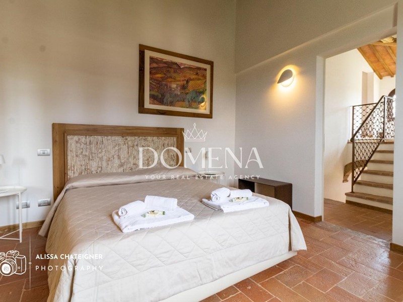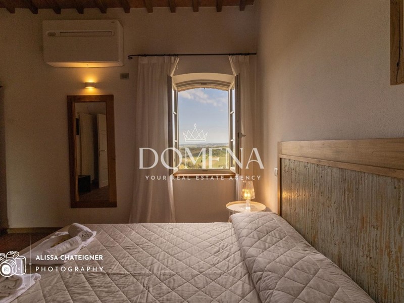 In posizione collinare dominante, la proprietà gode di una vista incantevole sulle torri di San Gimignano, che si possono ammirare sia dalla piscina condominiale panoramica che direttamente dalle finestre delle stanze. Un paesaggio che incanta ogni giorno, in ogni stagione.