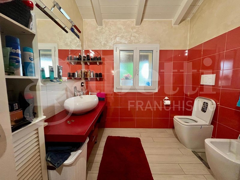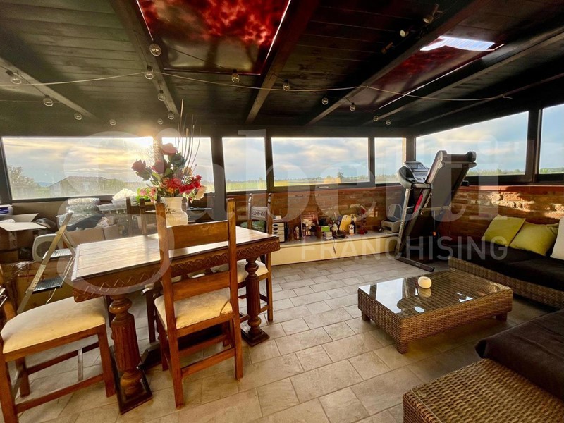 Al piano superiore si sviluppa la zona notte con due camere da letto, un secondo bagno dotato di doccia e una splendida terrazza verandata, perfetta per momenti di relax in ogni stagione.