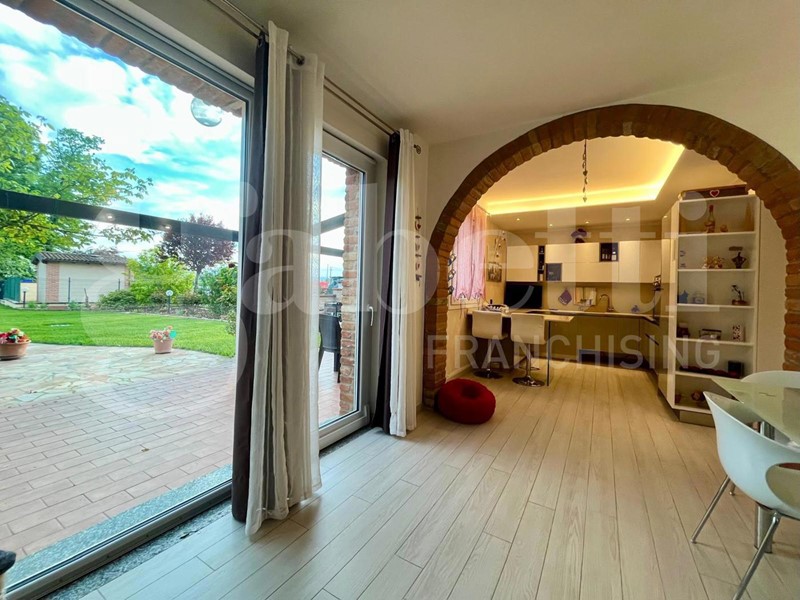 In tranquilla Località Casturzano, nel comune di San Giorgio Piacentino, proponiamo in vendita elegante villa con spazi luminosi e ben distribuiti, immersa nel verde.