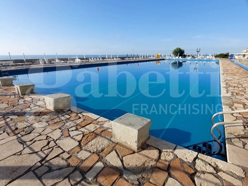 Una scala conduce direttamente all'area solarium, alla piscina e al mare. A disposizione una piscina olimpionica con acqua di mare e due vasche ideali per i più piccoli.