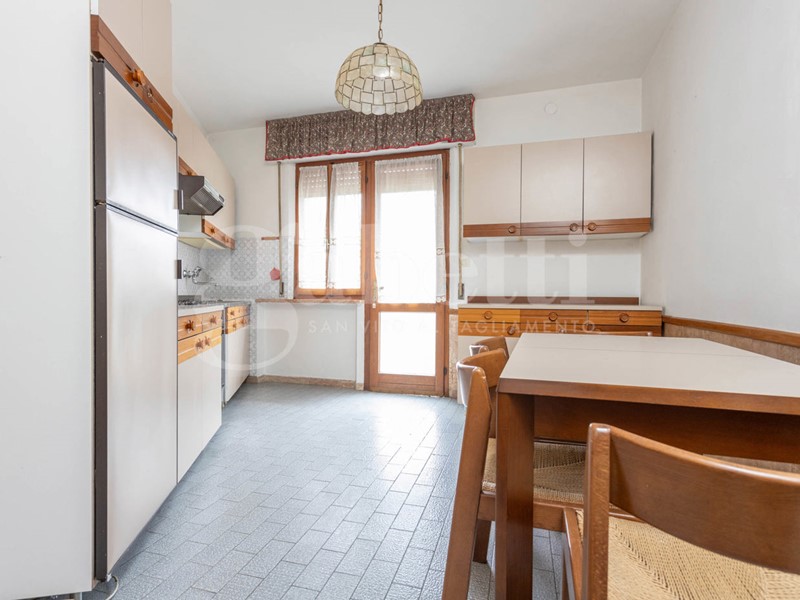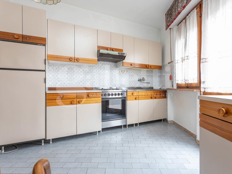Zona cucina, con accesso diretto a una terrazza di 22 mq, perfetta per pranzi all'aperto e momenti di relax estivi.