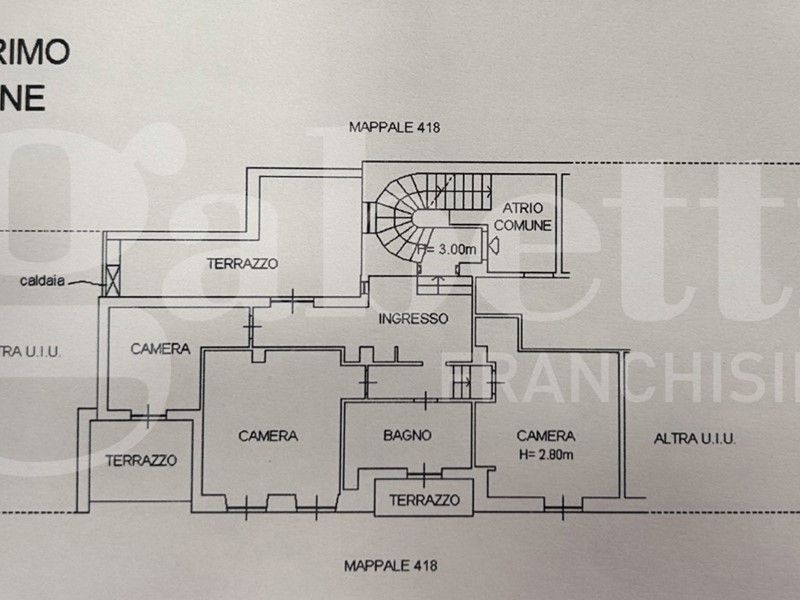 Al primo livello l'ingresso con disimpegno, tre camere da letto, e un bagno con balcone.