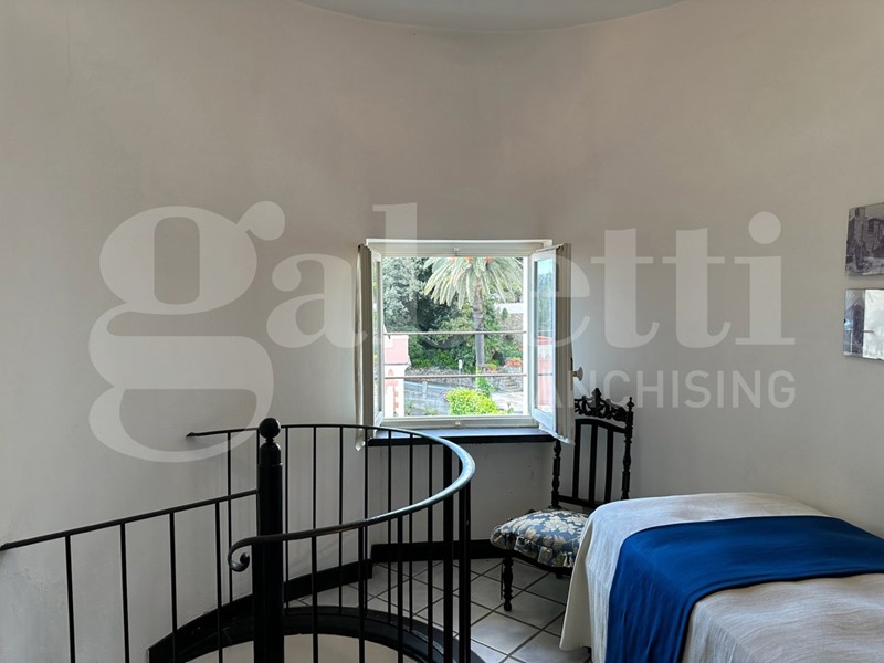 Al piano superiore un grande ambiente open space dove è situato il salone triplo con camino, caratterizzato da luminosità, oltre al secondo bagno e alla cucina abitabile con una splendida vista panoramica, tutto il piano è circondato da un ampio terrazzo fronte mare, ideale per pranzi all'aperto con barbecue e forno pizza e momenti di relax, affacciato sulla meravigliosa costa ligure.