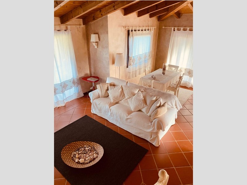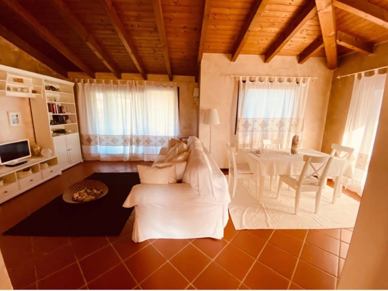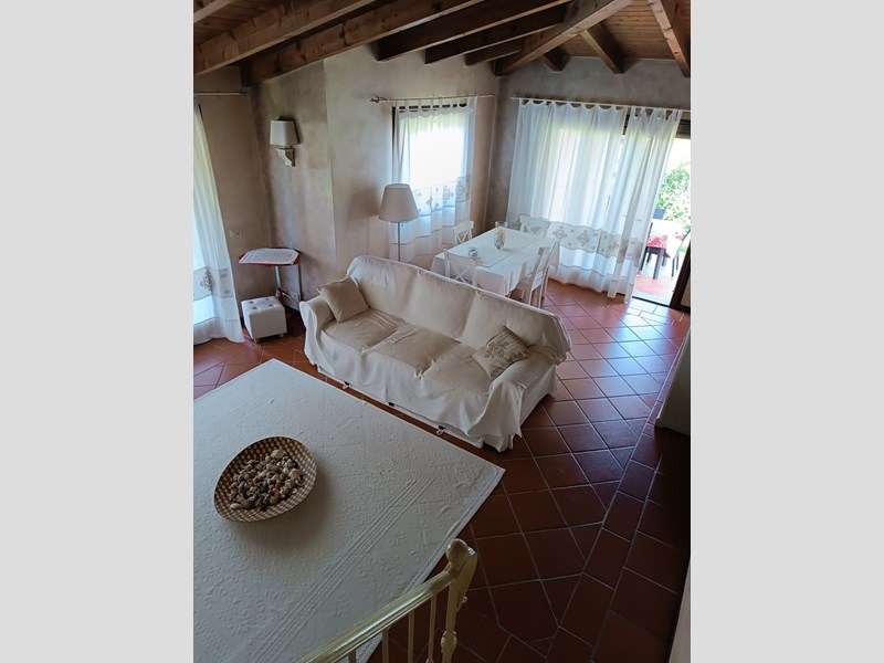 Si compone internamente al piano terra da un luminoso Soggiorno con tetto a falde e travi a vista con vetrate verso il giardino e verande, cucinino separato e completamente accessoriato, TRE camere da letto matrimoniali, un bagno e ripostiglio. Esternamente tre verande pergolate di circa 15 mq sono perfette per passare piacevoli e spensierati momenti all'aperto in compagnia.