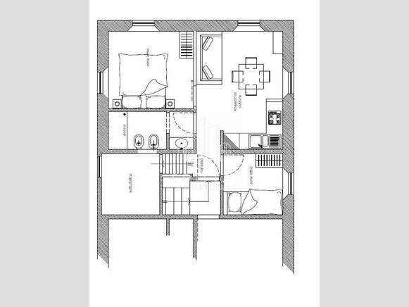 ingresso, soggiorno/pranzo con angolo cottura, camera matrimoniale, camera singola, e bagno con doccia oltre a sottotetto ad uso ripostiglio.