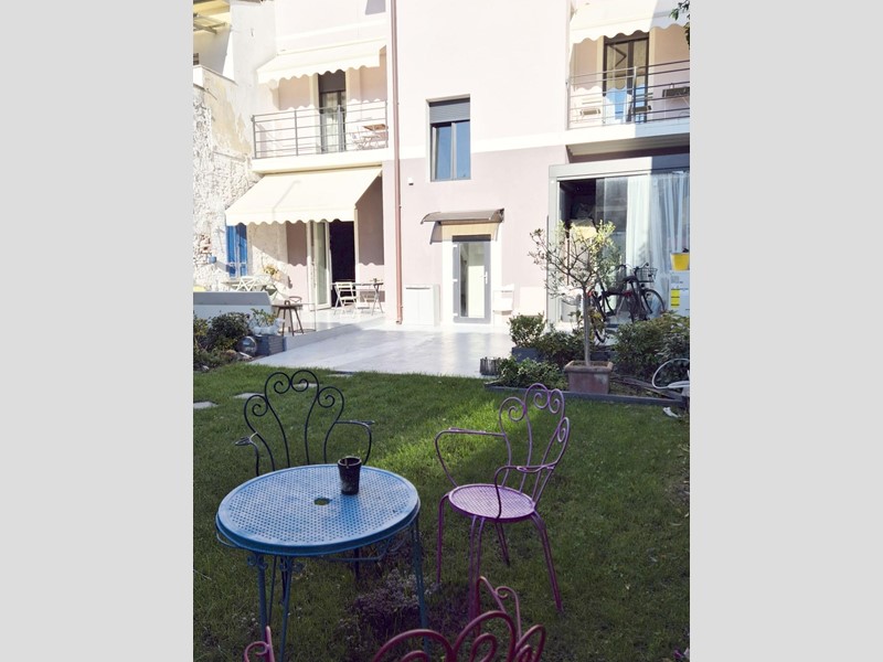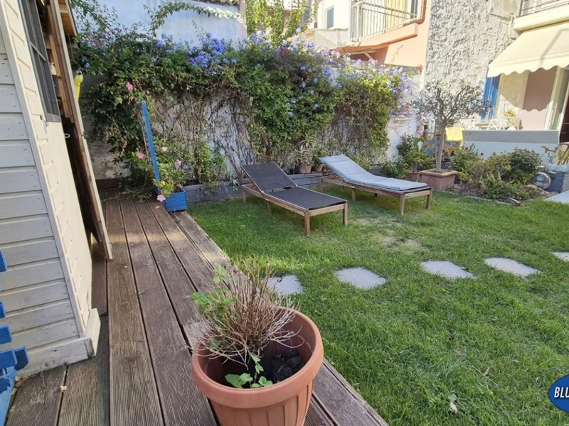 Al momento l'immobile è adibito a B&B, quindi ancora attivo, ma naturalmente ha destinazione civile abitazione. Si compone a piano terra di un ampio vano d'ingresso centrale con una bella scala in marmo di Calacatta, originale del 1938, sulla sinistra si sviluppa un vano di circa mq. 30 con bella cucina a vista e zona soggiorno con accesso alla serra e ad un vano ad uso ripostiglio, utilizzato come studio, che accede al giardino. Sulla destra dell'ingresso si trova la zona soggiorno/pranzo, sempre di circa mq. 30 con angolo bar ed accesso all'ampia terrazza che si affaccia sul giardino che guarda verso il mare. In fondo al giardino è stato realizzato un vano ad uso ripostiglio. Questo spazio esterno è veramente unico, sia per le dimensioni, è veramente difficile trovare un giardino interno di questa superficie, sia per l'esposizione che permette di godere della luce del tramonto, inoltre la terrazza permette di utilizzarlo al massimo nella bella stagione. Tornando nel vano ingresso, troviamo un bagno ricavato nel sottoscala.