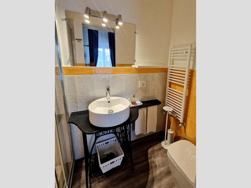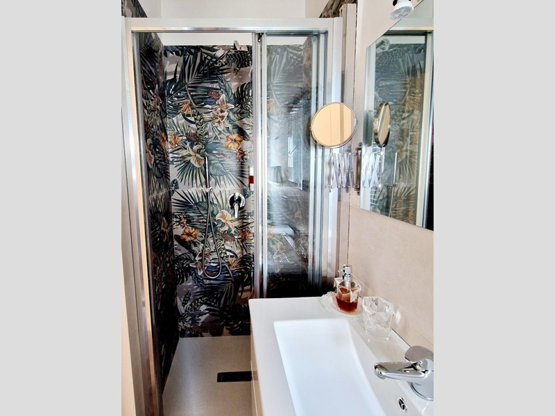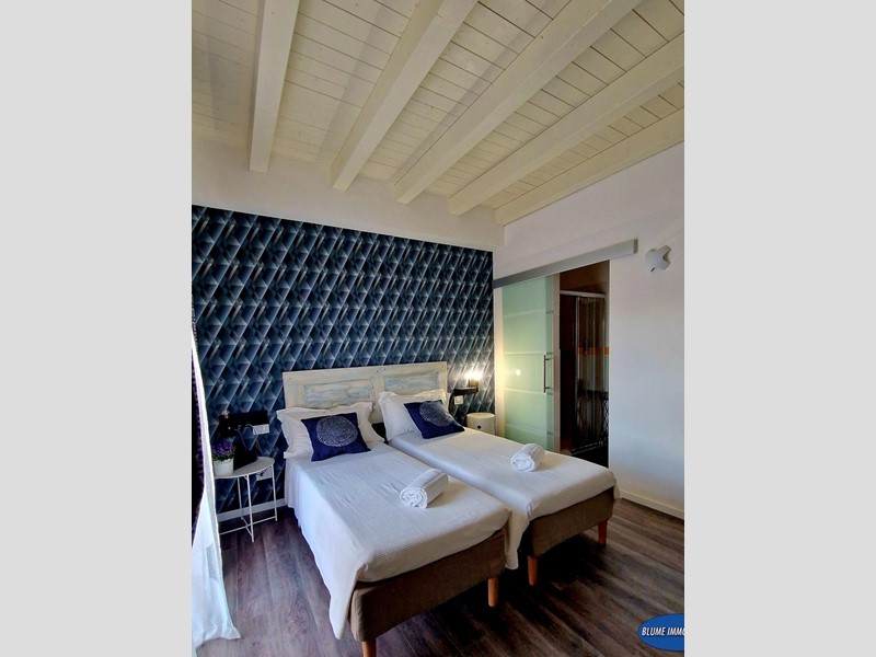 Al piano primo si sviluppa la zona notte composta da quattro camere matrimoniali, ognuna con il suo bagno, due balconi che servono le due camere fronte e due terrazzine vivibili con affaccio sul giardino, che servono le camere retro. A mezzo di una scala in ferro e legno, creata ex novo, si accede al piano mansardato con destinazione locali di sgombero ma avente un'altezza nel colmo di ml. 2,94 ed in gronda di ml. 1,53, dove sono state realizzate altre due camere matrimoniali con un bagno con vasca e doccia, una zona cottura/pranzo nell'ampio disimpegno, un locale guardaroba, che può essere utilizzata come ulteriore camera ed un vano lavanderia e vano tecnico, naturalmente i vari locali possono essere utilizzati in base alle proprie esigenze.