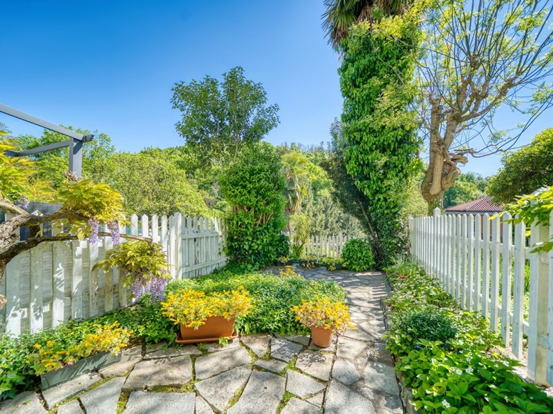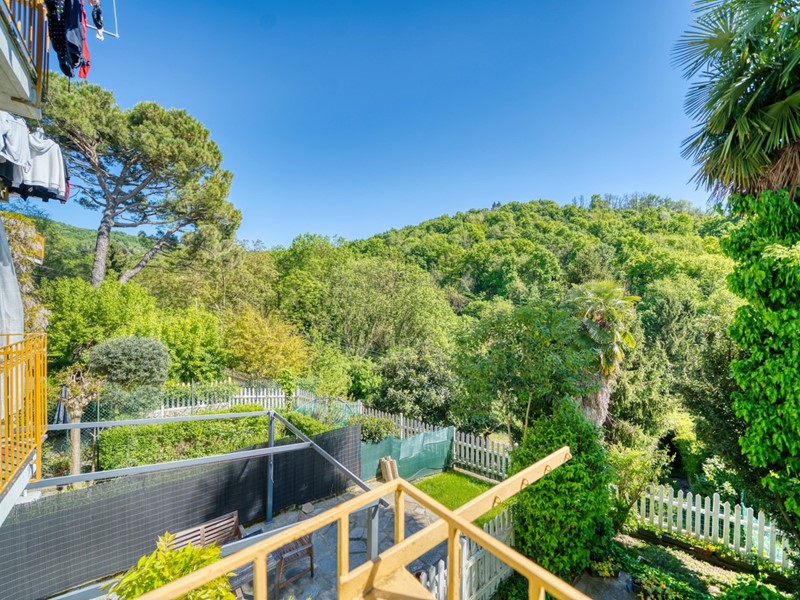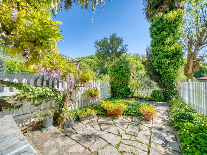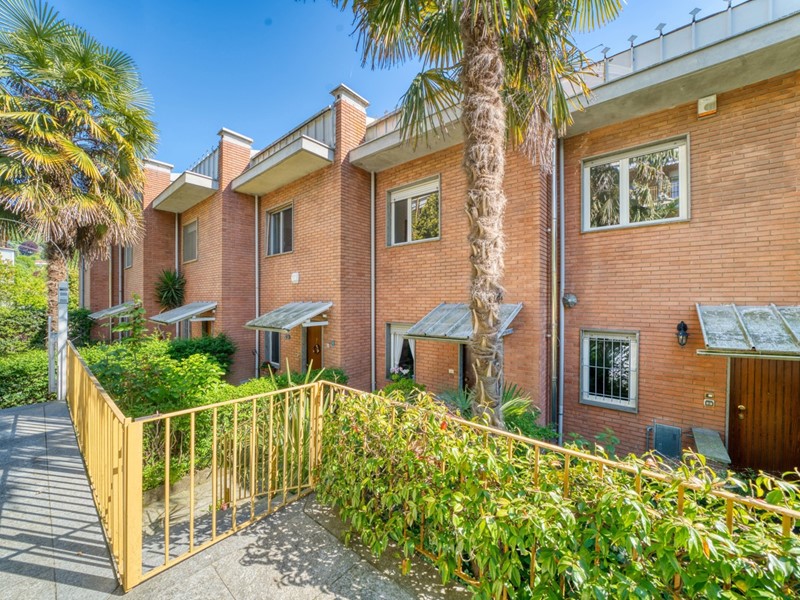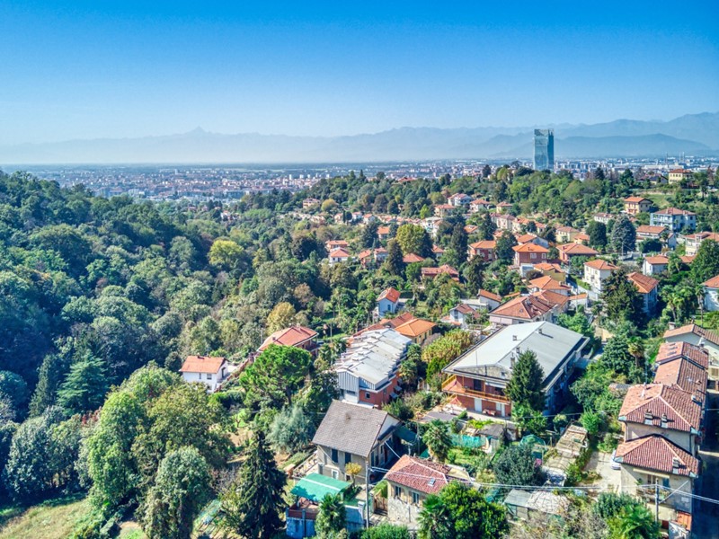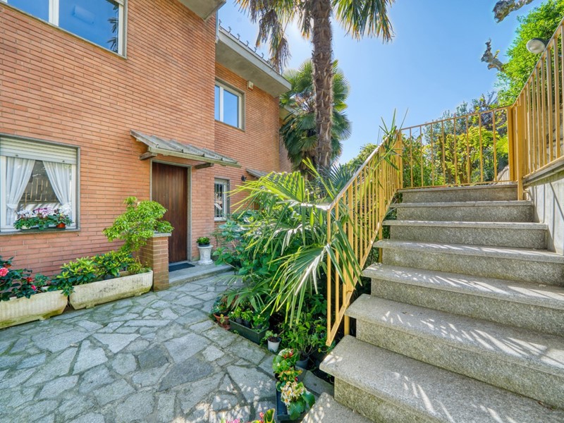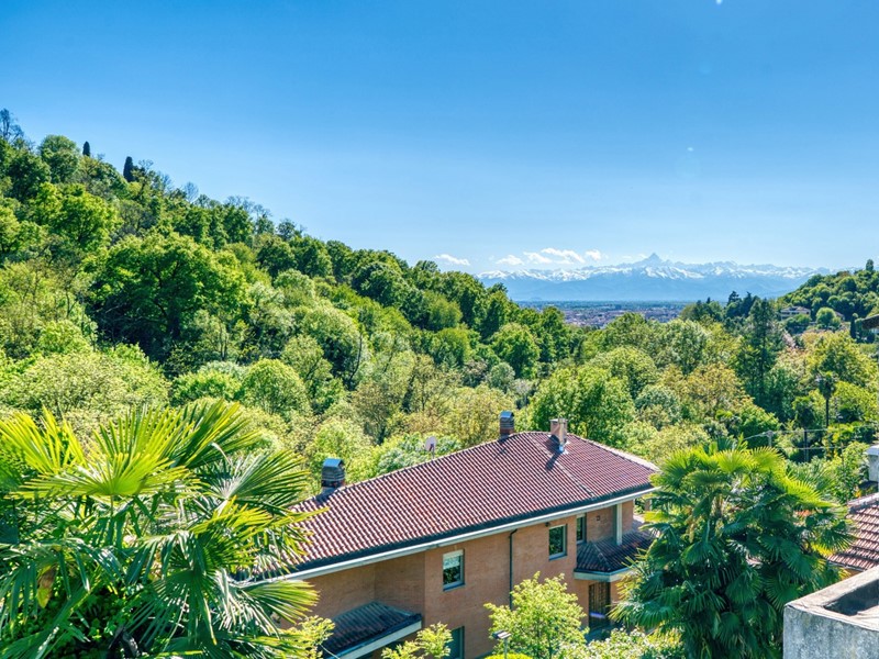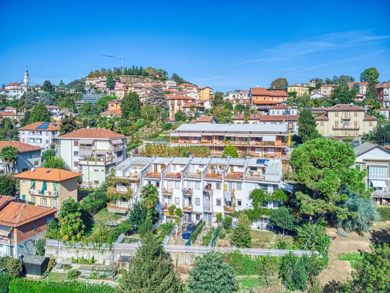 Il piccolo complesso panoramico esposto a SUD, è situato a soli 300 metri dalla Piazza Freguglia, al termine di una via chiusa ed è stato edificato alla fine degli anni sessanta. La porzione di villa è stata sempre ben manutenuta e ristrutturata recentemente con rifacimento tetto, dispone di serramenti in legno laccato con vetro-camera. Il piano terra/seminterrato presenta un'ampio tinello abitativo con angolo cucina e con affaccio sul giardino di 60 mq a Sud, una lavanderia, un bagno ed un locale dispensa; al piano primo, terreno lato strada, vi è l'ingresso indipendente dal giardino posteriore di 20 mq, un ingresso con armadio, una cucina semiabitabile ed un salone doppio (pranzo-salotto) dislocato su due livelli; al piano secondo (primo lato strada) vi sono due camere e grande bagno; infine al piano sottotetto vi è una mansarda abitativa con antistante terrazzo-solarium panoramicissimo con vista sulla collina, sulle Alpi e sulla città. Il riscaldamento è autonomo con caldaia a gas metano, le spese condominiali sono contenute. Vi è un passaggio pedonale interno al condominio per recarsi nella Piazza di Cavoretto, ai servizi ed alle scuole. Completa la proprietà un'autorimessa (al prezzo di ? 27.000) ed è disponibile il parcheggio nel bel cortile condominiale.