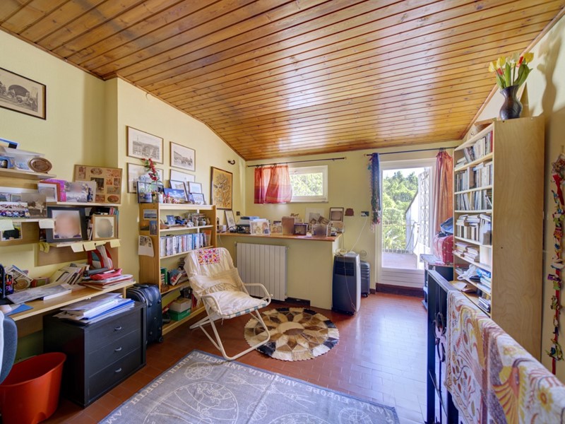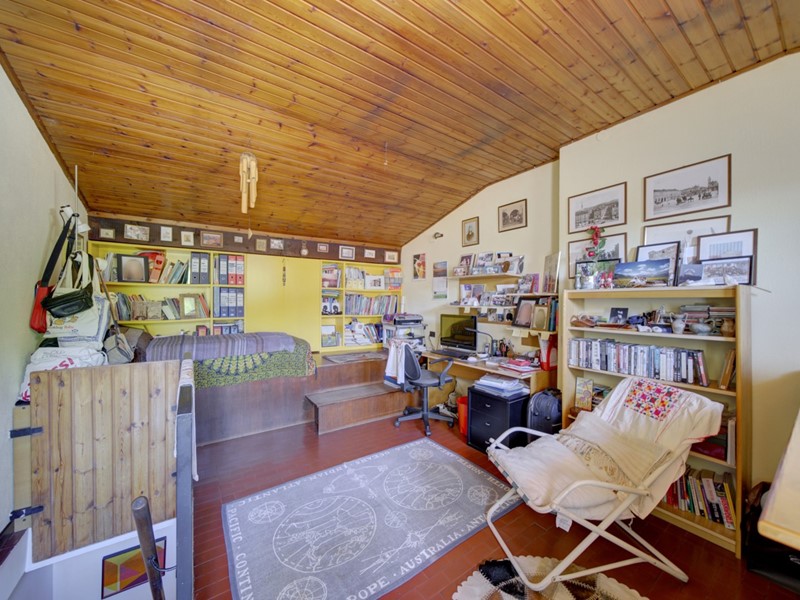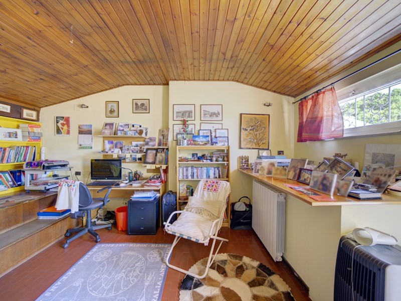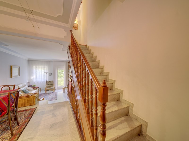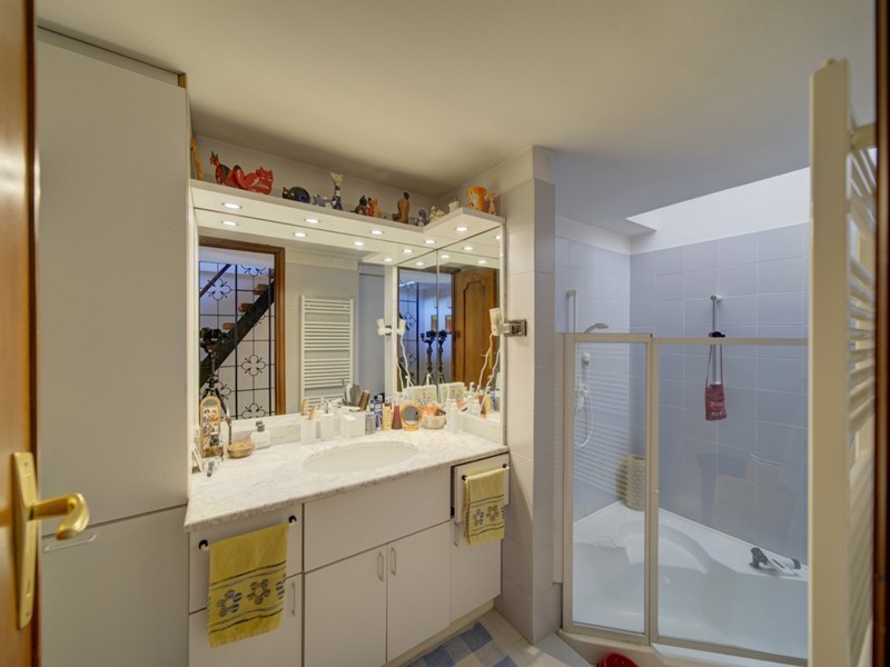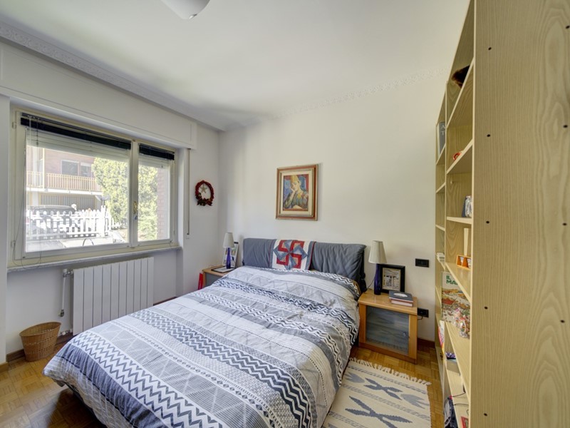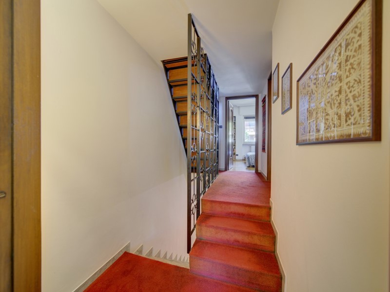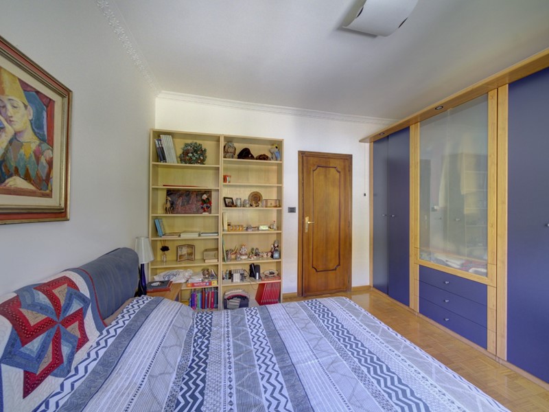 Il piccolo complesso panoramico esposto a SUD, è situato a soli 300 metri dalla Piazza Freguglia, al termine di una via chiusa ed è stato edificato alla fine degli anni sessanta. La porzione di villa è stata sempre ben manutenuta e ristrutturata recentemente con rifacimento tetto, dispone di serramenti in legno laccato con vetro-camera. Il piano terra/seminterrato presenta un'ampio tinello abitativo con angolo cucina e con affaccio sul giardino di 60 mq a Sud, una lavanderia, un bagno ed un locale dispensa; al piano primo, terreno lato strada, vi è l'ingresso indipendente dal giardino posteriore di 20 mq, un ingresso con armadio, una cucina semiabitabile ed un salone doppio (pranzo-salotto) dislocato su due livelli; al piano secondo (primo lato strada) vi sono due camere e grande bagno; infine al piano sottotetto vi è una mansarda abitativa con antistante terrazzo-solarium panoramicissimo con vista sulla collina, sulle Alpi e sulla città. Il riscaldamento è autonomo con caldaia a gas metano, le spese condominiali sono contenute. Vi è un passaggio pedonale interno al condominio per recarsi nella Piazza di Cavoretto, ai servizi ed alle scuole. Completa la proprietà un'autorimessa (al prezzo di ? 27.000) ed è disponibile il parcheggio nel bel cortile condominiale.
