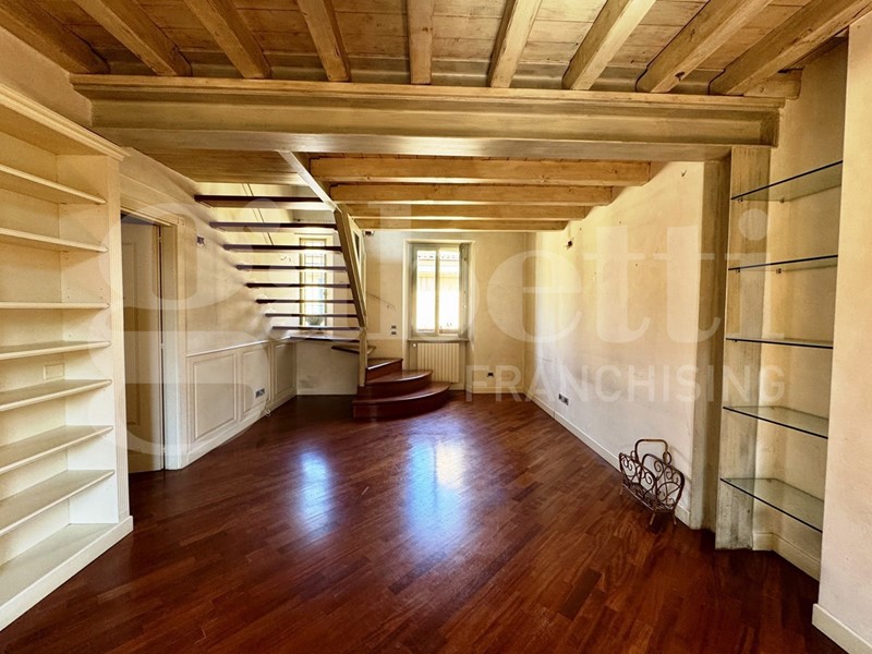 Nel cuore del centro storico di Brescia, a pochi passi dalla suggestiva Piazza Loggia, proponiamo questa raffinata residenza disposta su due livelli, sita in una delle vie più caratteristiche e riservate della città.
