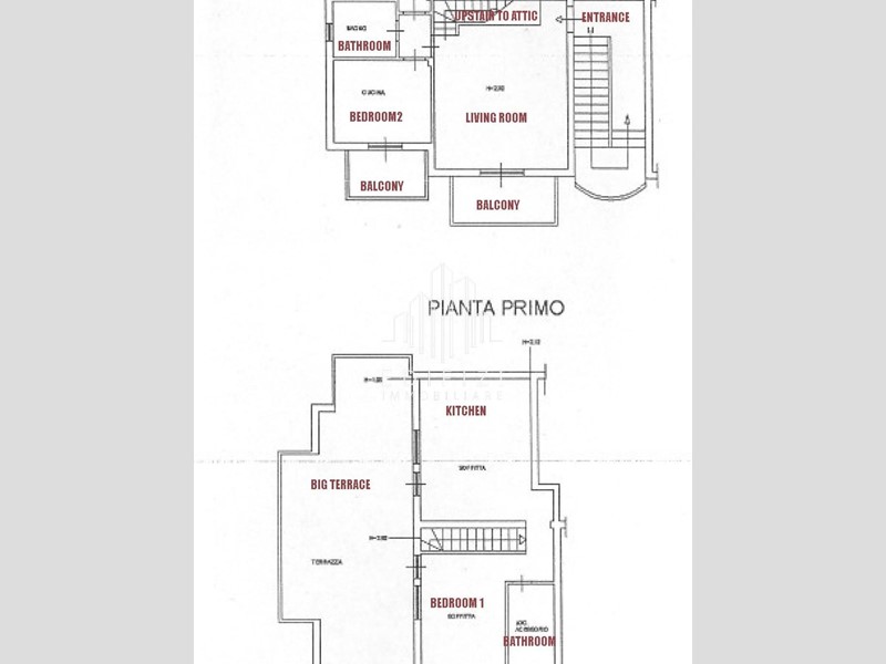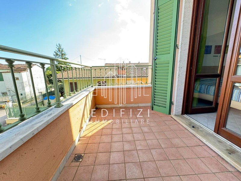 Al suo interno è composto da ingresso su soggiorno, due camere di generose dimensioni, bagno e tre balconi al piano primo.