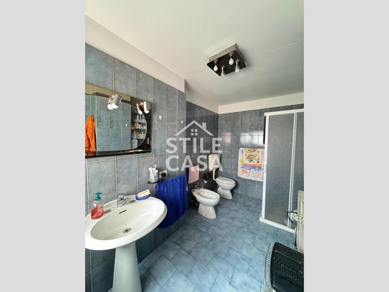 La prima abitazione, accessibile da un’elegante scala esterna che conduce a un terrazzo, accoglie con un grande ingresso, un luminoso soggiorno, tinello con terrazzo, cucinotto, tre spaziose camere matrimoniali e due bagni. Al piano terra si trovano una taverna, lavanderia, bagno di servizio e un garage, collegati anche internamente da scala a chiocciola.