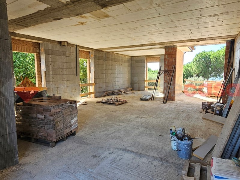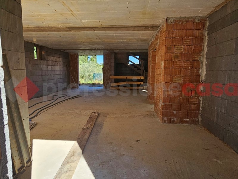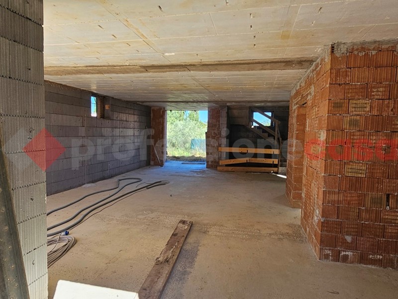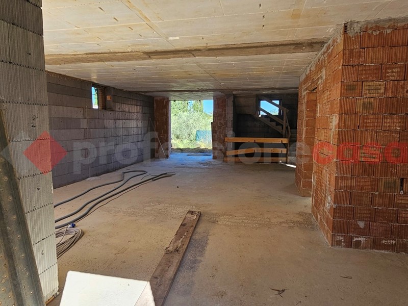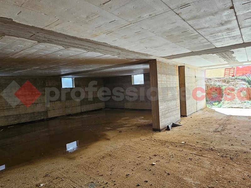 L'immobile si sviluppa su tre livelli cui, al piano seminterrato con oncgresso da rampa troviamo il vano garage con superficie catastale di 130 mq. collegato internamente da scala che si accede al piano superiore al piano terra composto da grande salone con accesso diretto in giardino, cucina grande , bagno e ripostiglio.