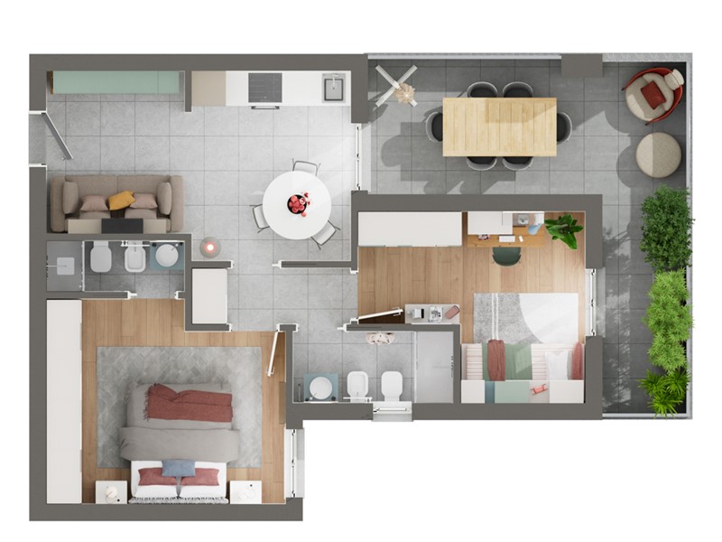 ***La presente pubblicazione costituisce esclusivamente una base illustrativa. Le immagini (rendering fotorealistico) sono a scopo illustrativo, tutte le informazioni, descrizioni e immagini sono puramente indicative e soggette a variazioni. , la planimetria non è valida per le misurazioni necessarie alla realizzazione dell'arredo, le quali dovranno essere rilevate in loco. ***