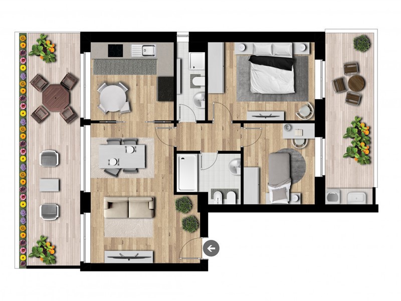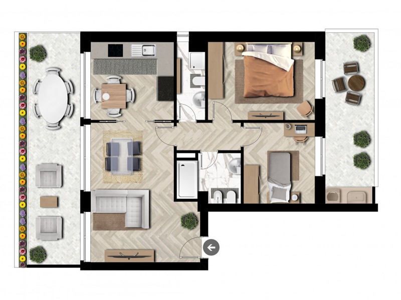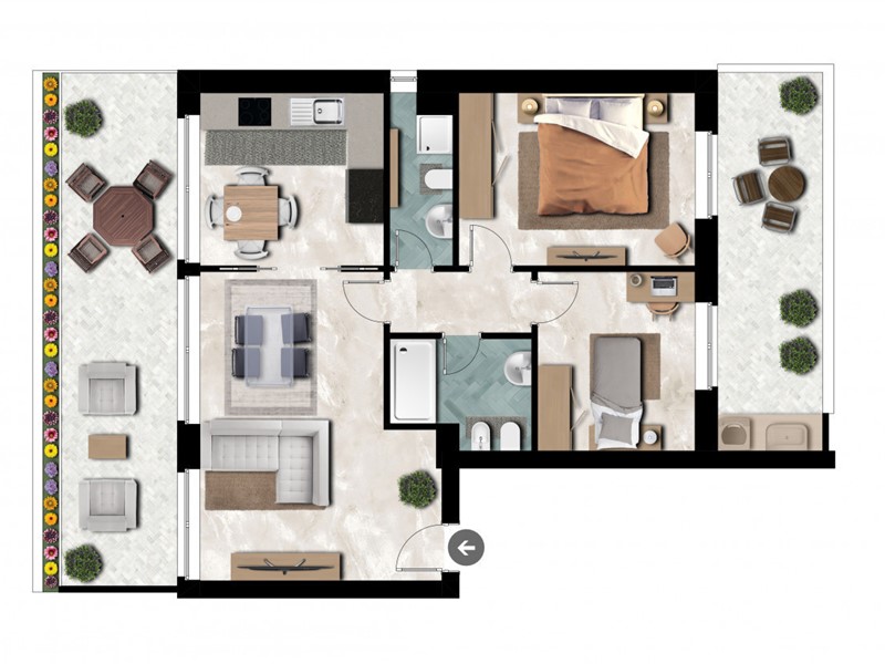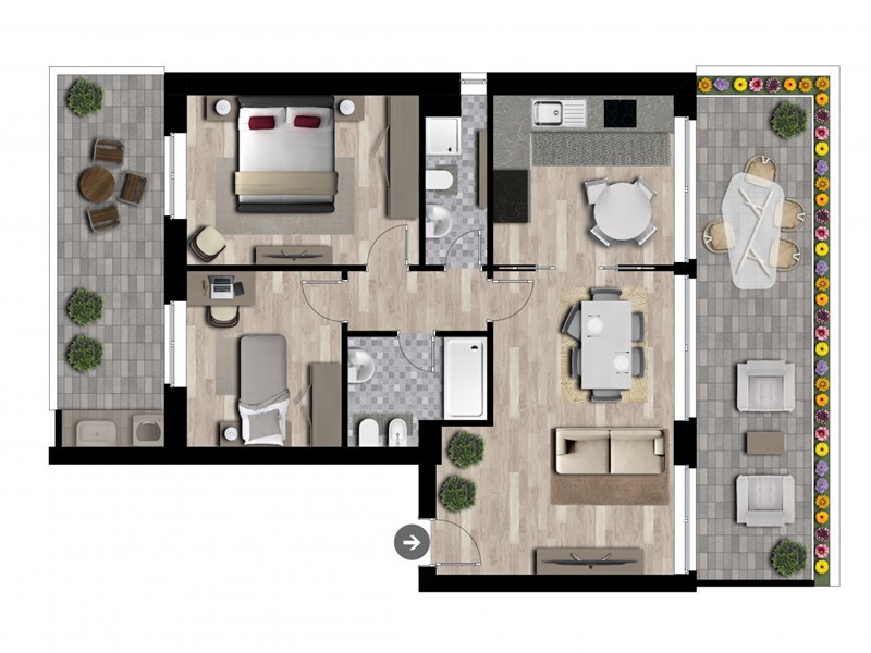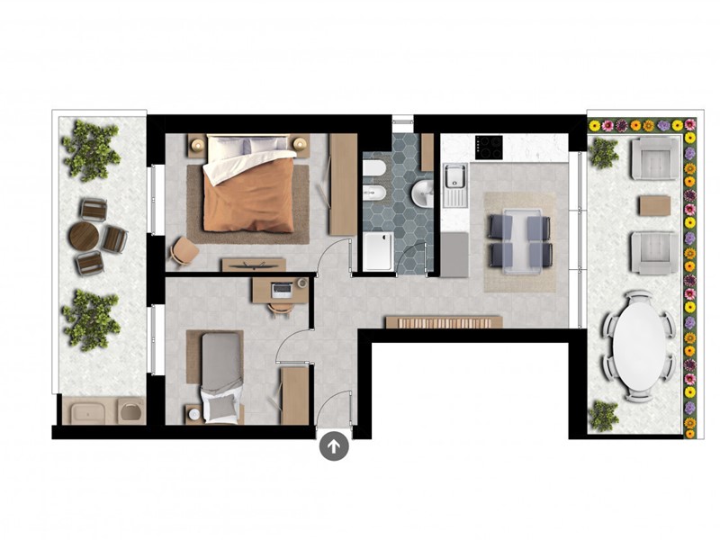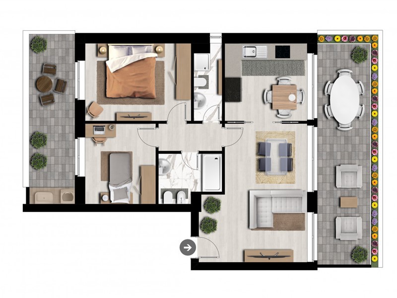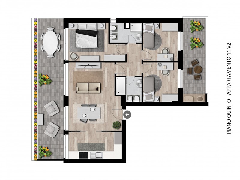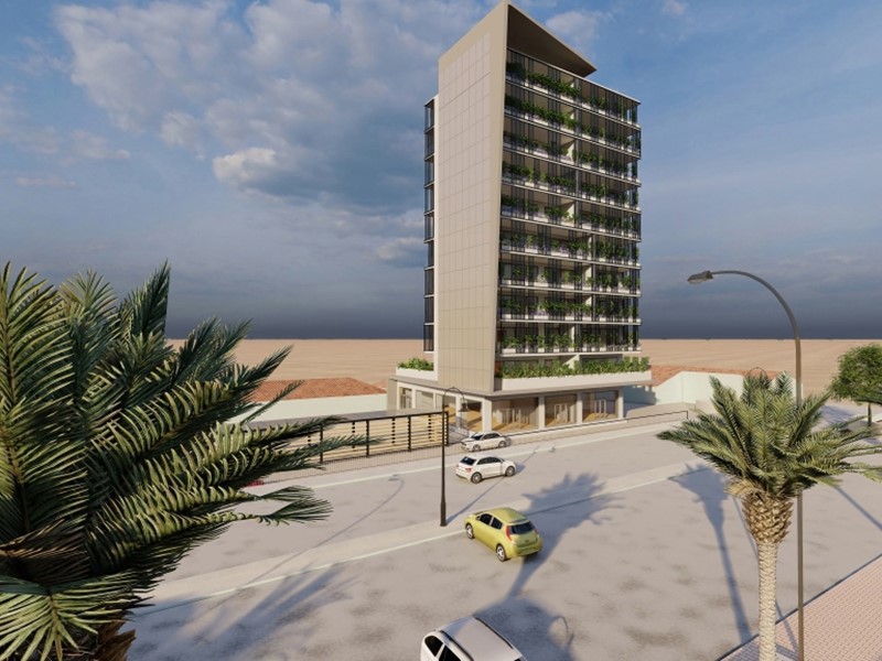 Il nuovo palazzo in fase di realizzazione si sviluppa su dieci piani fuori terra, progettato per offrire soluzioni abitative moderne e funzionali. L'edificio si caratterizza per la presenza di sette tipologie di distribuzione interna differenti, pensate per soddisfare le diverse esigenze di spazio e comfort. Ogni appartamento è progettato con ampi affacci su balconi spaziosi, che si orientano verso nord, garantendo una luminosità naturale ottimale e una vista panoramica.