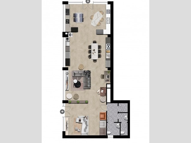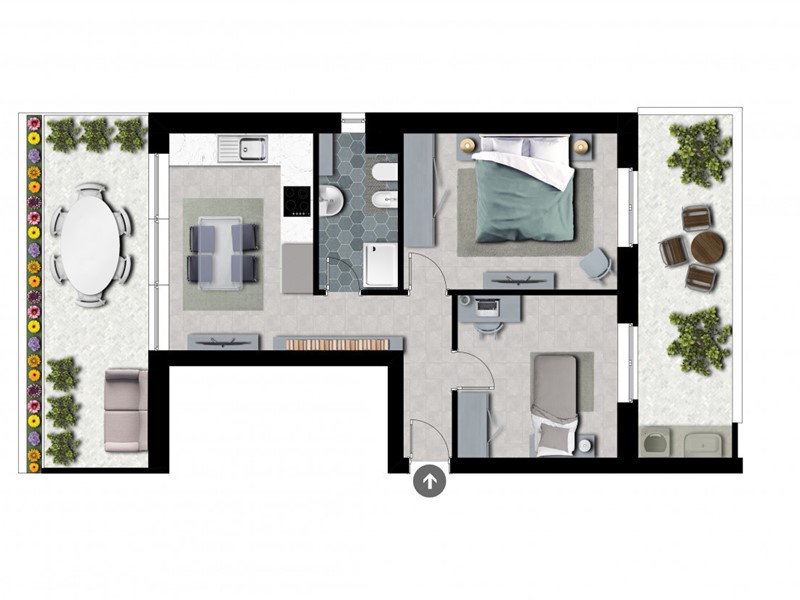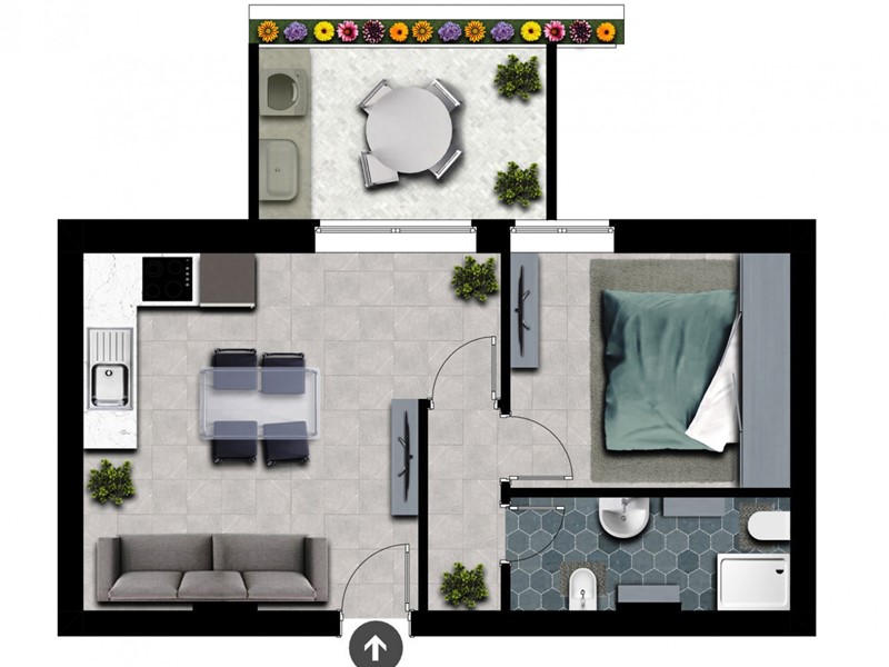 L'architettura moderna dell'edificio è ulteriormente arricchita dalla presenza di un elegante pergolato, che valorizza gli spazi esterni, mentre i pannelli fotovoltaici integrati nel design contribuiscono a una gestione energetica sostenibile, riducendo l'impatto ambientale dell'edificio. La struttura è concepita per rispondere alle esigenze di chi cerca una casa confortevole, efficiente e in armonia con l'ambiente circostante.