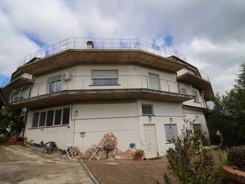 Casa Indipendente in aperta campagna abruzzese, situata in una posizione strategica a 20 minuti dalle località turistiche di mare e montagna.\n\nCostruita su 3 livelli, composta da 3 diverse abitazioni di cui 1 adibito a piccolo B and B facilmente espandibile, una mansarda in fase di costruzione, boxe auto, locale sotterraneo, ampio parcheggio, due giardini, due terreni ad uso agricolo già avviati per la produzione di pregiate uve da vino, piantagione di ulivi e alberi da frutta.\n\nL'appartamento principale ha un accesso indipendente ed è composto da un ampio soggiorno con cucina a vista e camino, un piccolo salottino, un'ampia camera da letto matrimoniale, un bagno dotato di doccia e vasca idromassaggio, un ampio ripostiglio con lavanderia e scala di accesso al piano terra. Un piccolo portico di circa 30 mq davanti all'ingresso completa l'abitazione principale che rimane ben separata dall'area destinata a B and B.\n\nAl pian terreno troviamo due appartamenti separati, entrambi dotati di ingresso indipendente, ma facilmente collegabili tra loro con l'apertura di una porta già predisposta. L'appartamento più grande è composto da 4 ampie camere, due bagni e 1 grande salone ideale per feste ed eventi dal quale si può accedere alla mansarda.\nIl secondo appartamento è adibito a B and B, la porta di ingresso affaccia direttamente al giardino frontale della residenza, ed è composto da un'area comune con cucina e 2 camere matrimoniali ognuna con il proprio bagno di servizio.\n\nLa mansarda, in fase di completamento, è predisposta per due grandi camere ideali come Suite, con balconi e predisposizione per bagni dedicati. A dividere le due camere un corridoio dal quale si accede all'ampio terrazzo.\n\nIl boxe auto al piano interrato è dotato di servizio e collegato con una cantina di ampia metratura.\n - Maggiori Dettagli: Cantina, Ripostiglio, Camino, Porta blindata