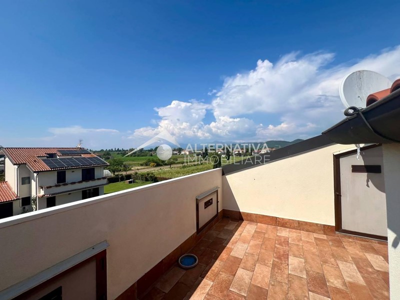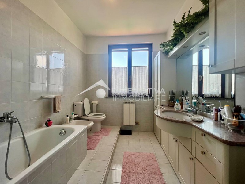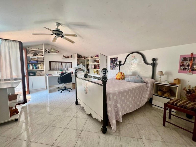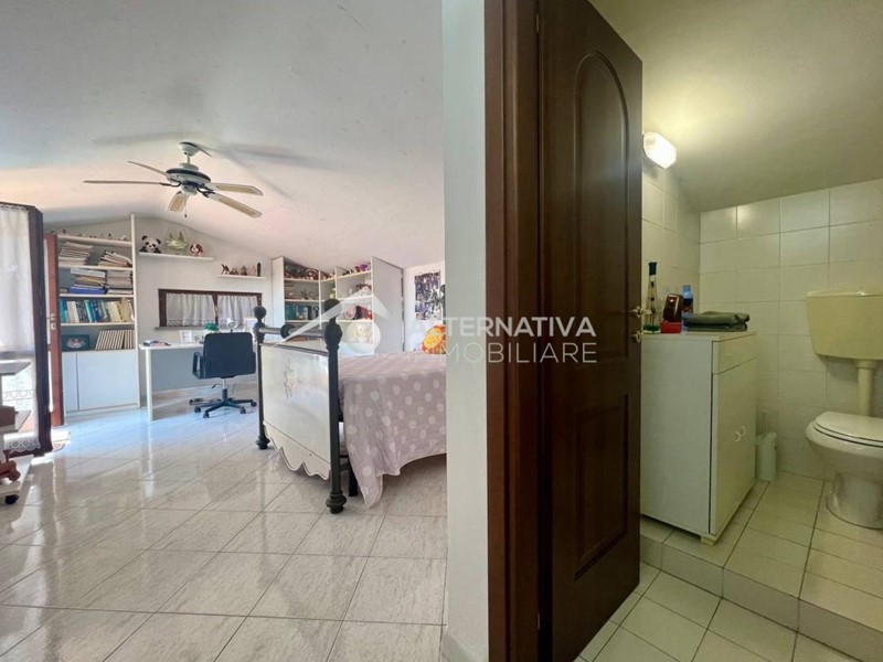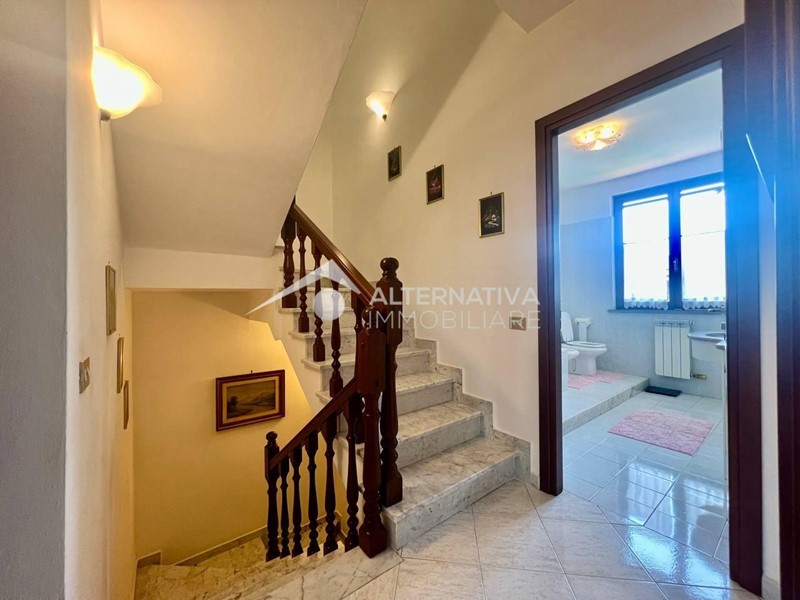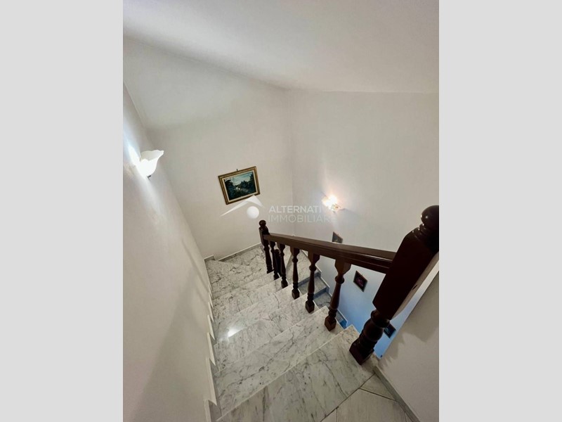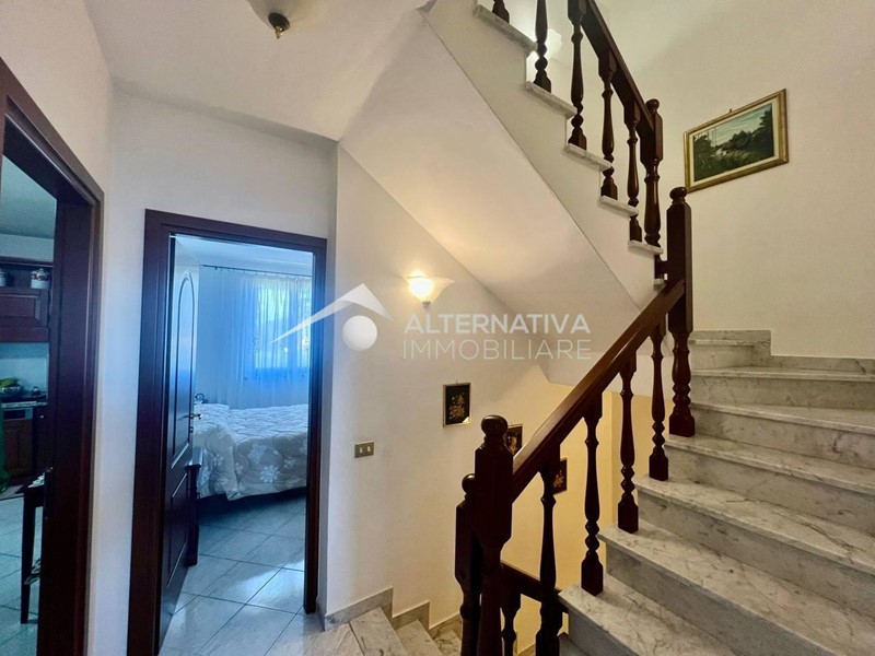 Al piano primo accediamo alla zona giorno open space con cucina, balcone, sala, camera matrimoniale e bagno principale finestrato con vasca. Dalla bellissima scala in marmo bianco, accediamo alla mansarda molto ampia, completa di secondo bagno con doccia. È presente anche una terrazza a tasca, avente ben quattro ripostigli sottotetto.