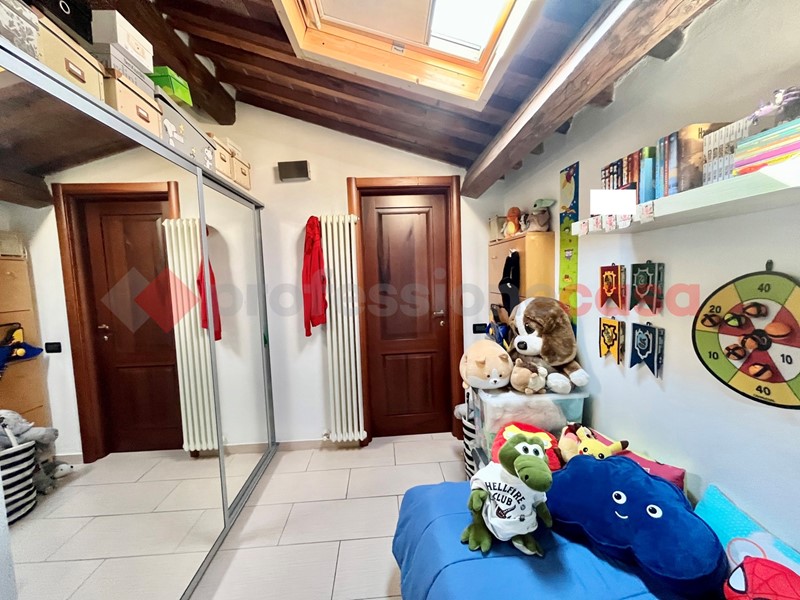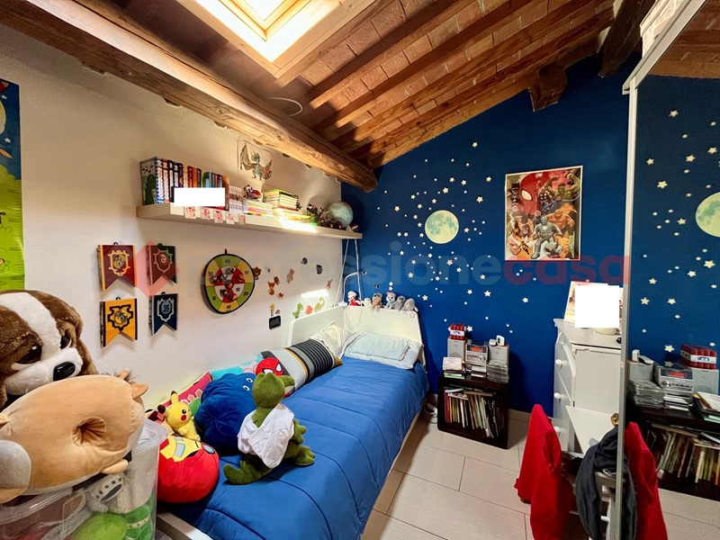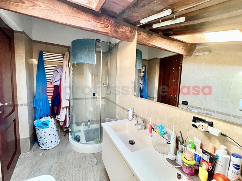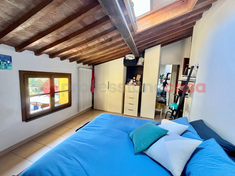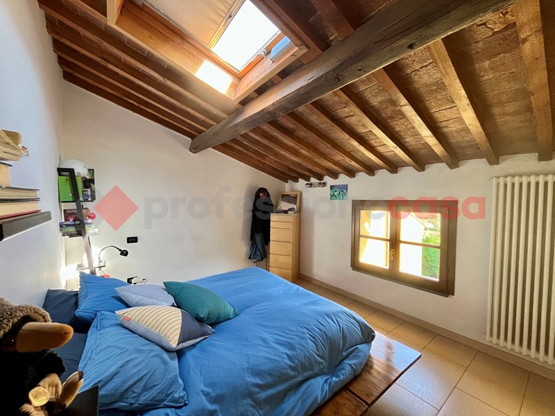 La zona notte è al caratteristico piano mansardato con travi e travicelli è costituita da camera matrimoniale, una camerina/studio con lucernario, bagno finestrato con lucernario.