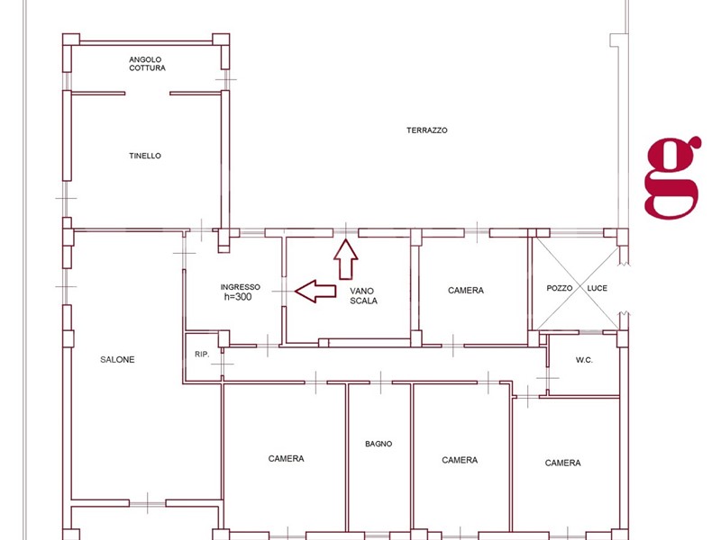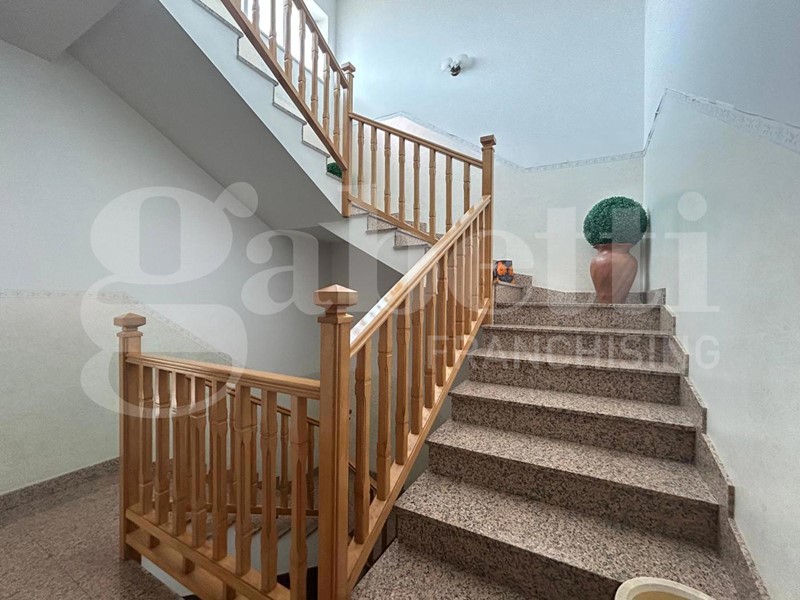 Internamente è caratterizzato da una metratura pari a 223 mq oltre esterni, e si compone di ingresso, cucina tinello con camino, salone doppio, quattro camere da letto, due bagni finestrati e ripostiglio. Ampio valore aggiunto il grande terrazzo a livello oltre il balcone che circonda tutta l'abitazione.