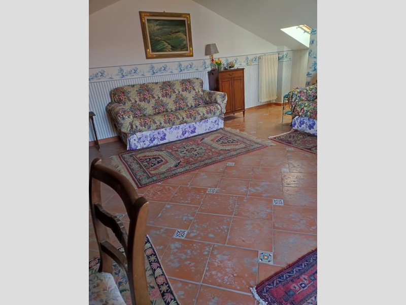 Fronte mare a pochi passi dalla spiaggia e dalla passeggiata , si vende un ottimo appartamento di circa 80 mq, in palazzina condominiale completamente ristrutturata (rifacimento facciate e cappotto).L'immobile si sviluppa al 2° ed ultimo piano ed è composto da soggiorno con angolo cottura, piccolo balcone, camera matrimoniale, bagno con doccia e finestra. Tramite scala interna è possibile raggiungere la mansarda composta da un ampio vano uso soggiorno/camera, piccolo bagno e accesso diretto alla terrazza abitabile di circa 50 mq VISTA MARE. Dalla stessa terrazza si ha la possibilità di accedere ad un altro vano adibito a camera autonoma con bagno. Completano la proprietà una cantina ed un posto auto esclusivo coperto. Impianto di riscaldamento autonomo a metano.
