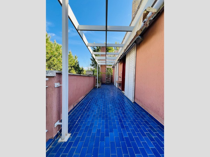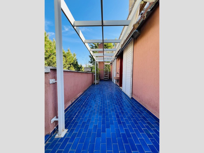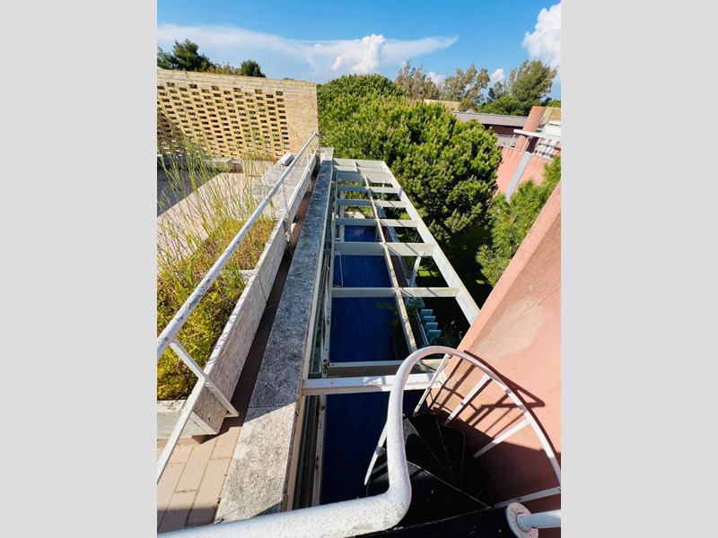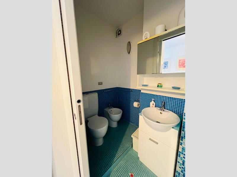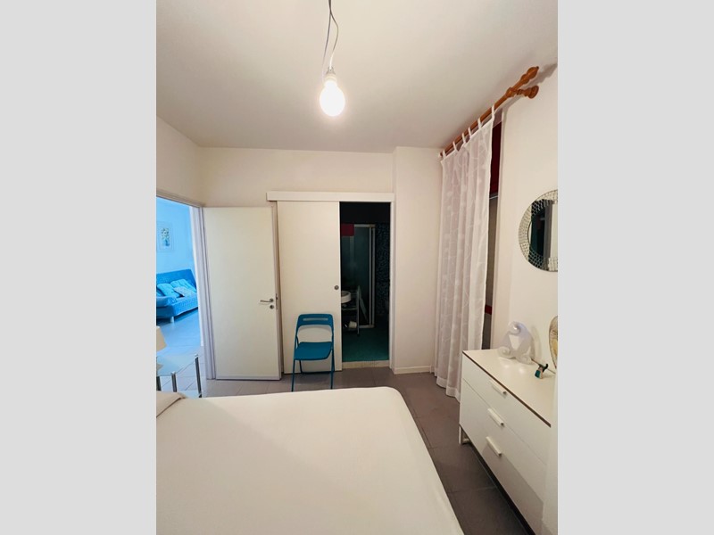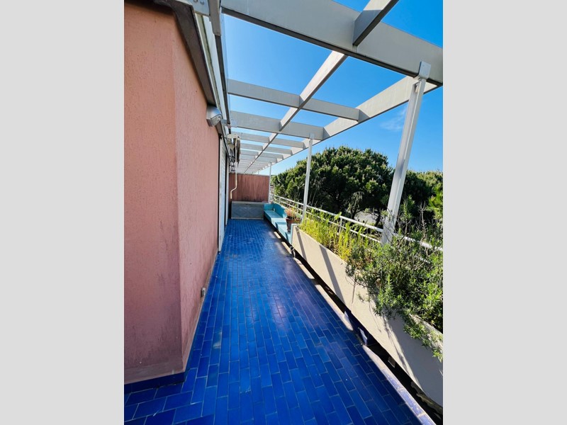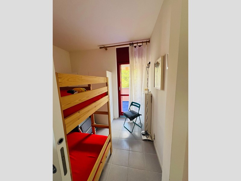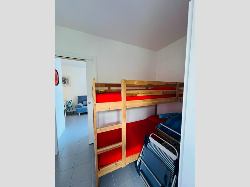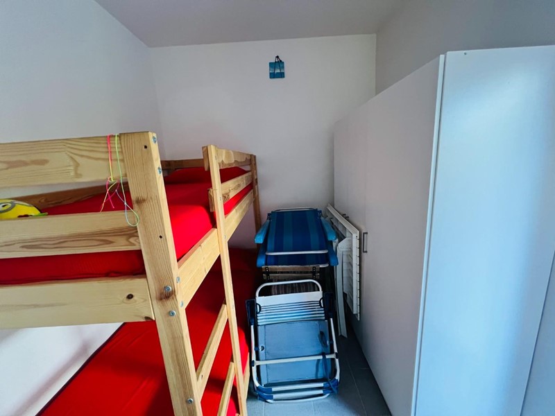 L'appartamento dispone di una camera matrimoniale con bagno annesso, garantendo privacy e comfort, e di una camera singola con letti a castello, perfetta per i più giovani. Ogni stanza ha accesso alla terrazza esterna, dove poter godere di piacevoli colazioni al sole o rilassanti aperitivi al tramonto. L'accesso al solarium privato tramite una comoda scala a chiocciola rende questo appartamento ancora più speciale.