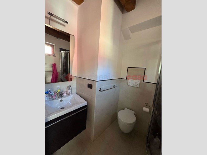 - Piano secondo : Si accede alla camera da letto matrimoniale , dotata di bagno personalizzato e di un grazioso balconcino con ringhiera in ferro battuto , che affaccia sulla caratteristica stradina del borgo.