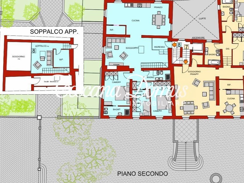 A soli 5 km dalla citta' direzione ovest In un contesto unico, all’interno di una storica villa padronale risalente al 1500 , proponiamo in vendita una porzione della stessa con entrata indipendente posto a secondo e ultimo piano servito da ascensore, la sua metratura si estende per 180 mq mq, piu' 25 mq di soppalco, con terrazzo meraviglioso di 37 mq privato offrendo totale privacy, immersa nel verde e nella quiete della campagna toscana, circondata da grande parco condominiale con presente una bella piscina riservata.